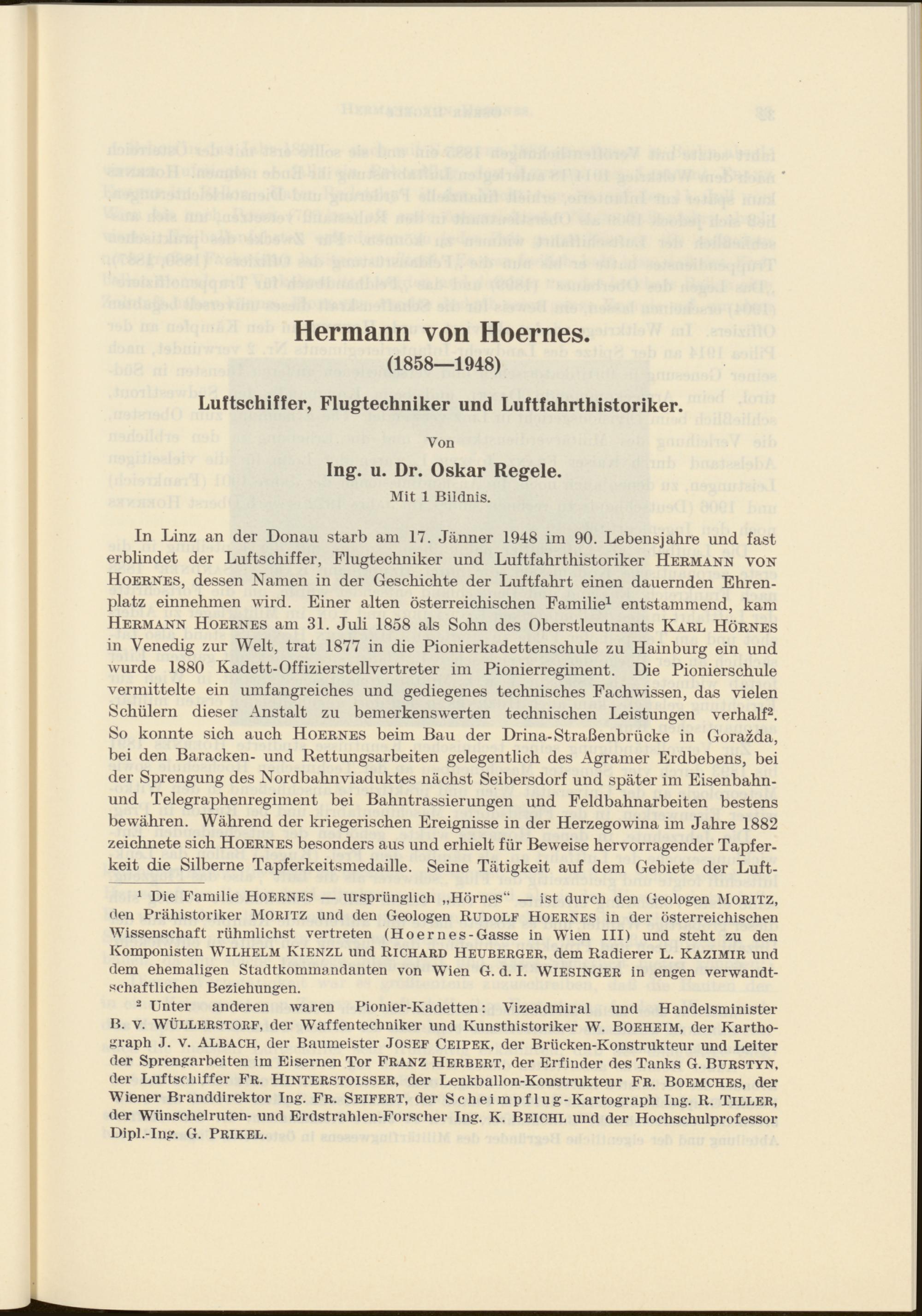 Hermann von Hoernes : (1858-1948) ; Luftschiffer, Flugtechniker und Luftfahrthistoriker / von Oskar Regele