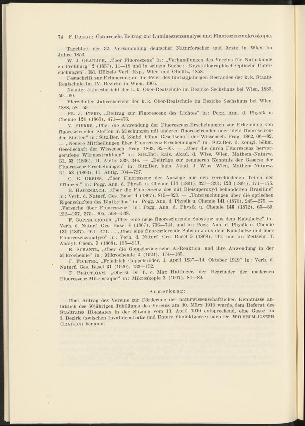 Österreichs Beitrag zur Lumineszenzanalyse und Fluoreszenzmikroskopie / von Franz Dangl