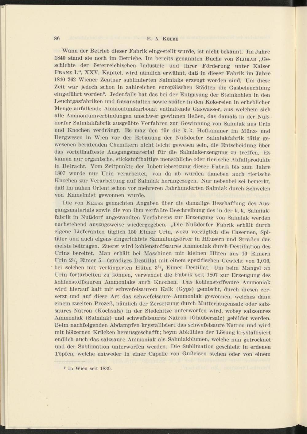 Zur Geschichte der ehemaligen Staatlichen Schwefelsäurefabrik in Wien-Heiligenstadt und der ehemaligen k.k. Salmiakfabrik in Nußdorf / von E. A. Kolbe