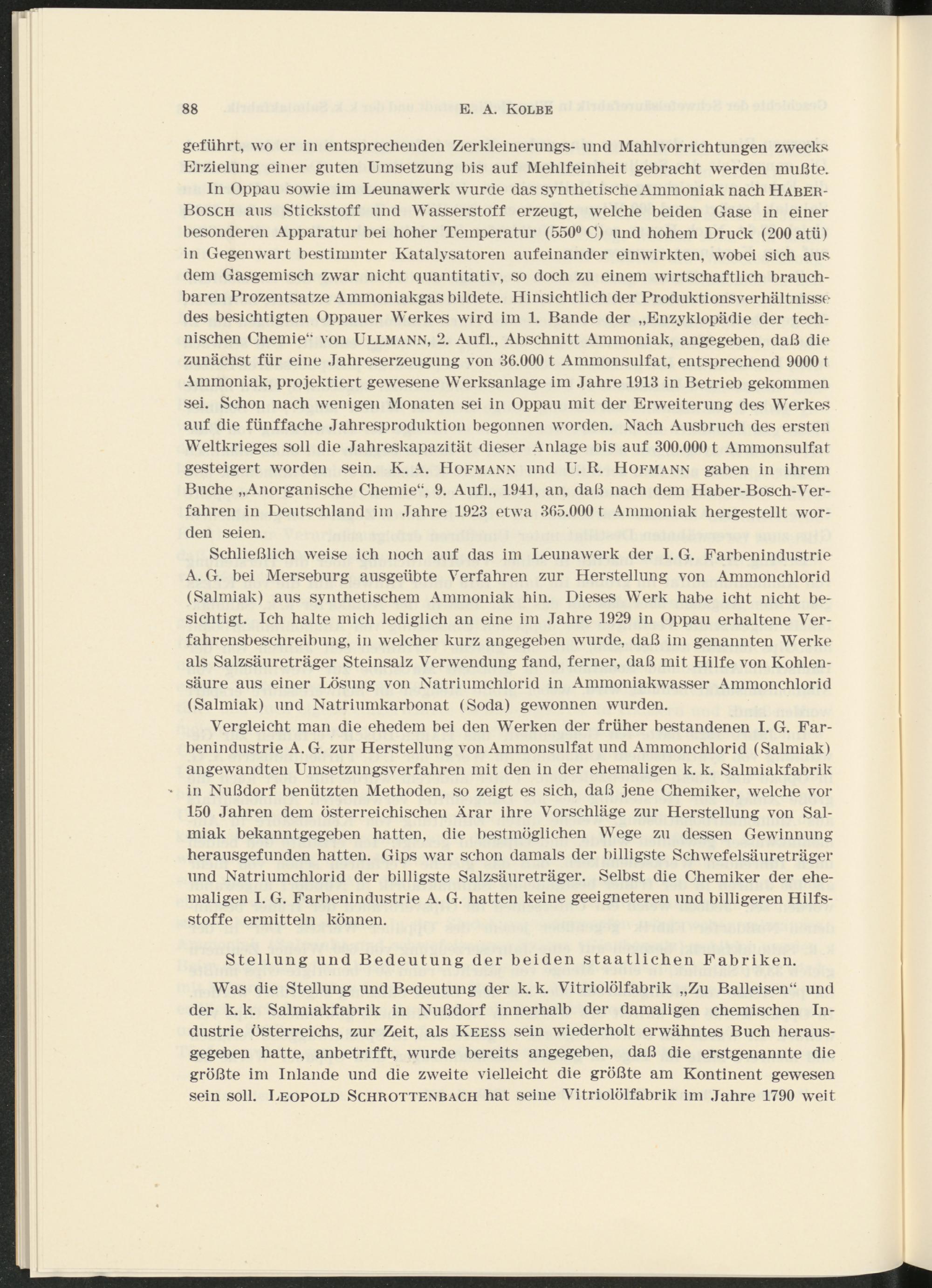 Zur Geschichte der ehemaligen Staatlichen Schwefelsäurefabrik in Wien-Heiligenstadt und der ehemaligen k.k. Salmiakfabrik in Nußdorf / von E. A. Kolbe