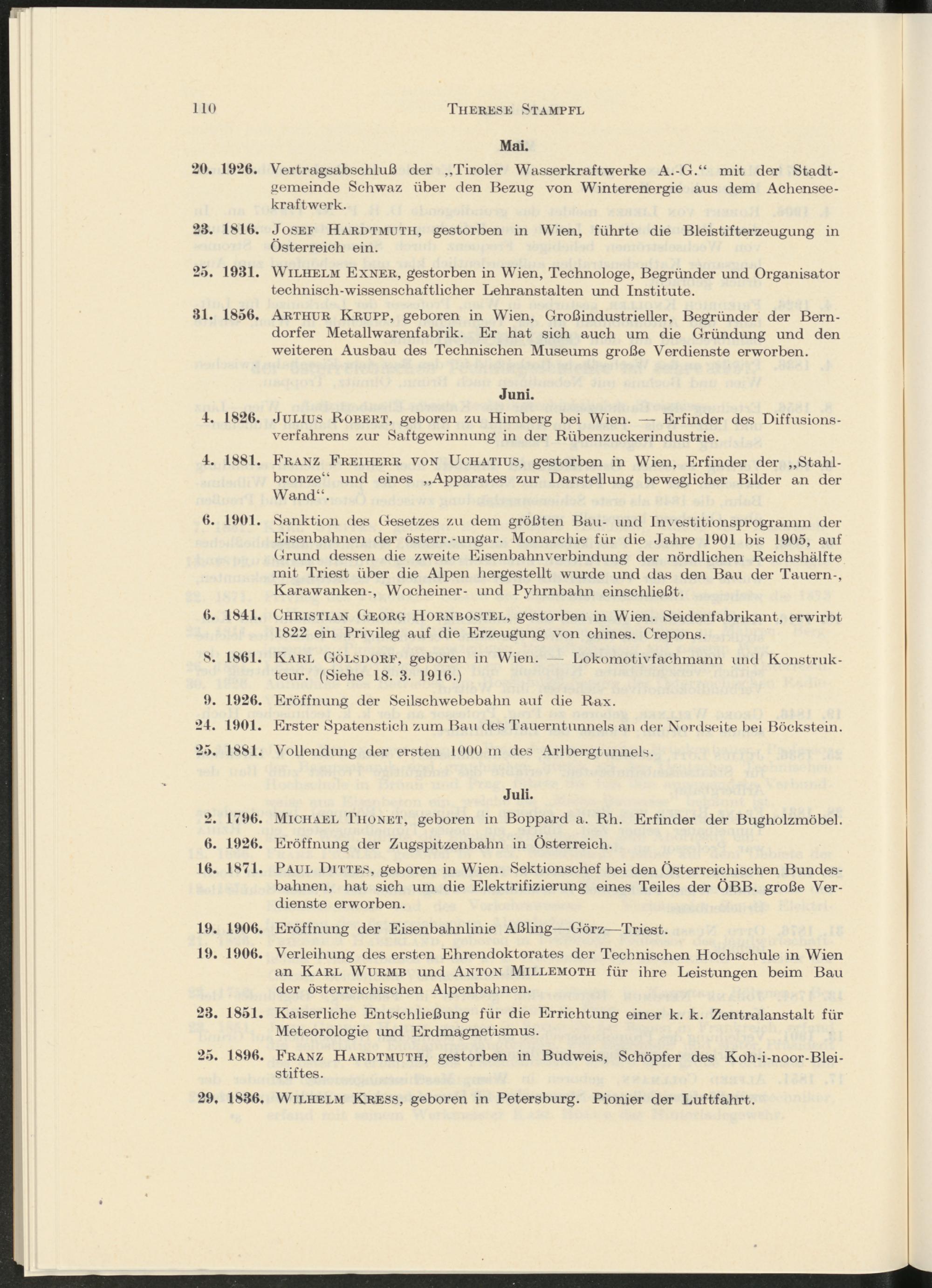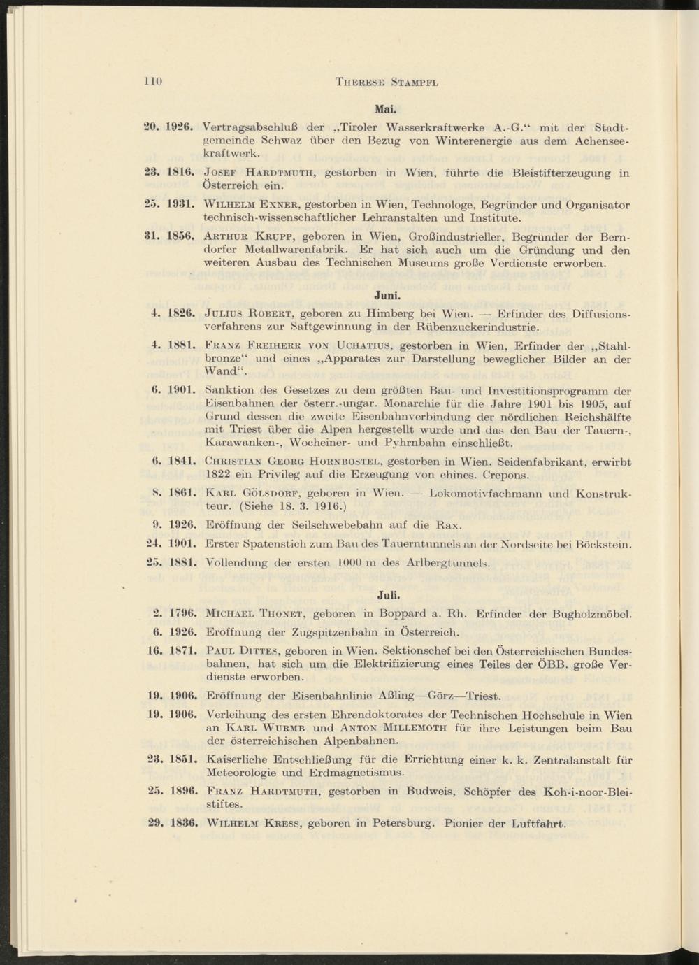 Gedenktage der österreichischen Technikgeschichte im Jahre 1951 von Therese Stampfl
