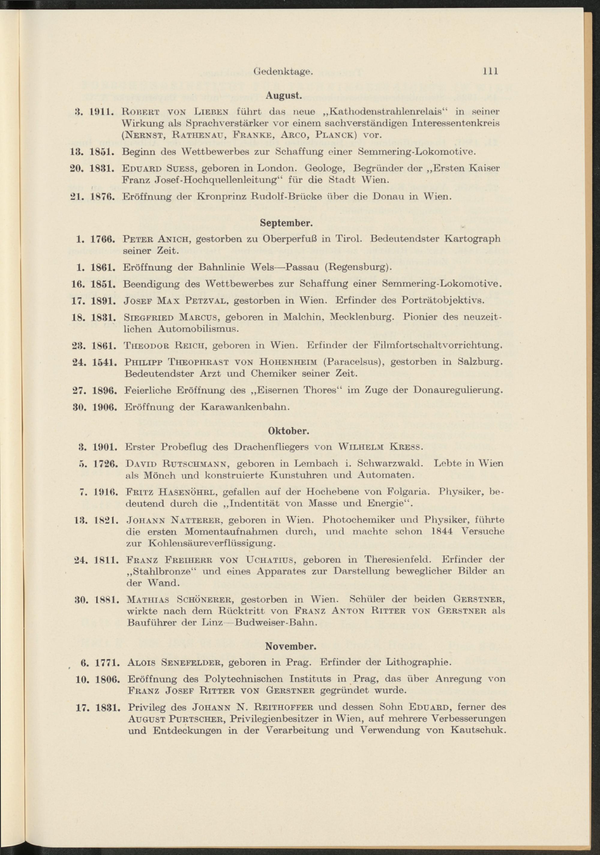 Gedenktage der österreichischen Technikgeschichte im Jahre 1951 von Therese Stampfl