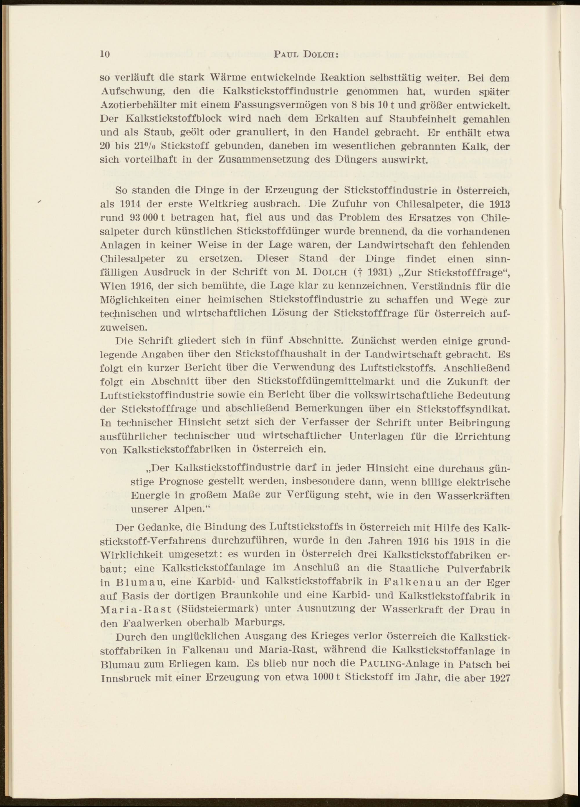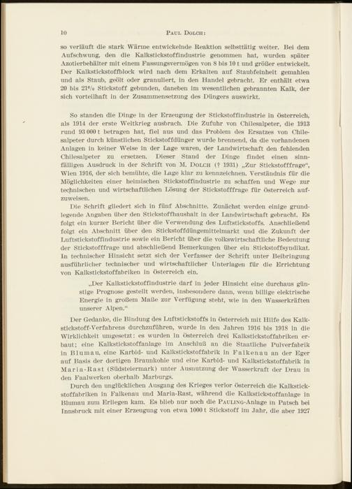 Entwicklung und Stand der Stickstoffdüngerindustrie in Österreich / von Paul Dolch