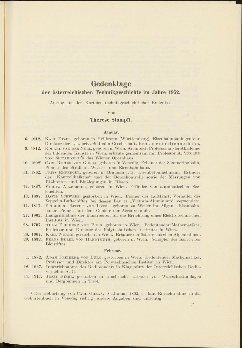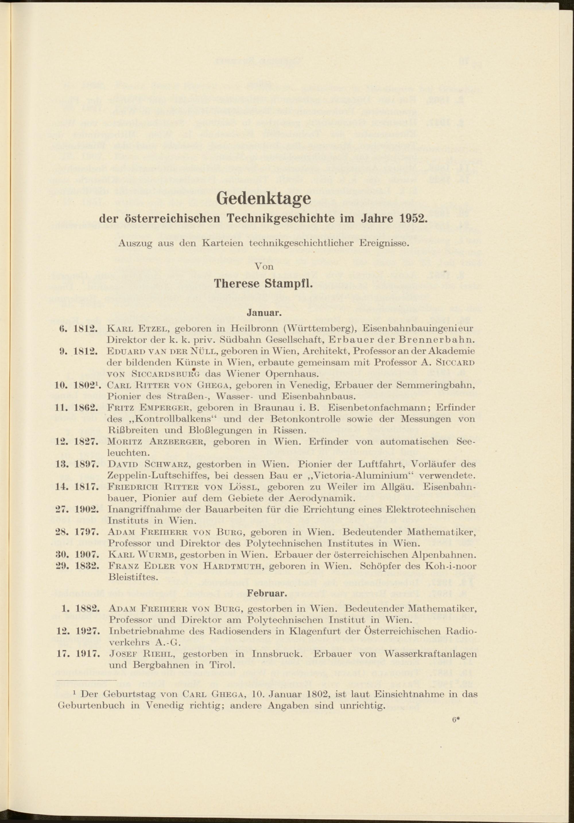 Gedenktage der österreichischen Technikgeschichte im Jahre 1952 von Therese Stampfl