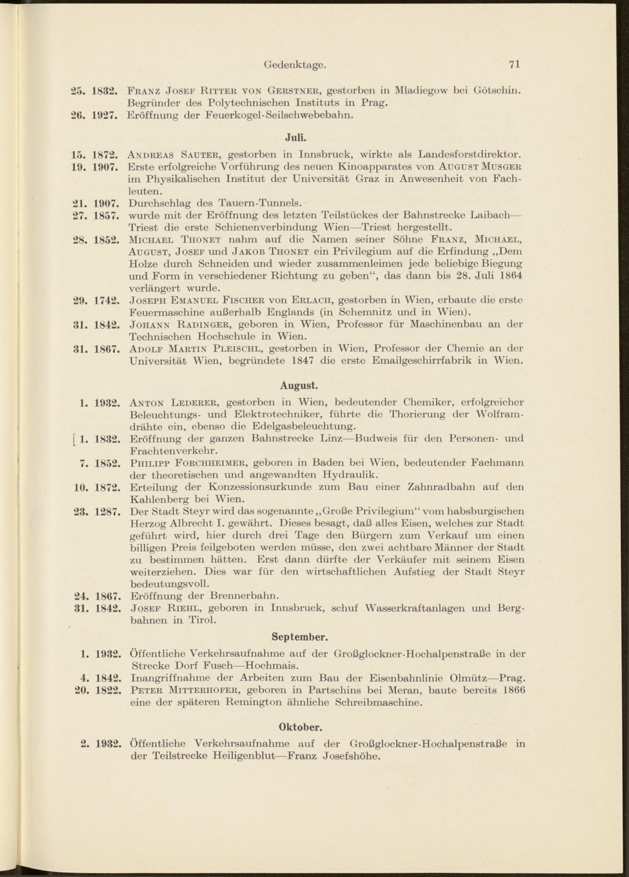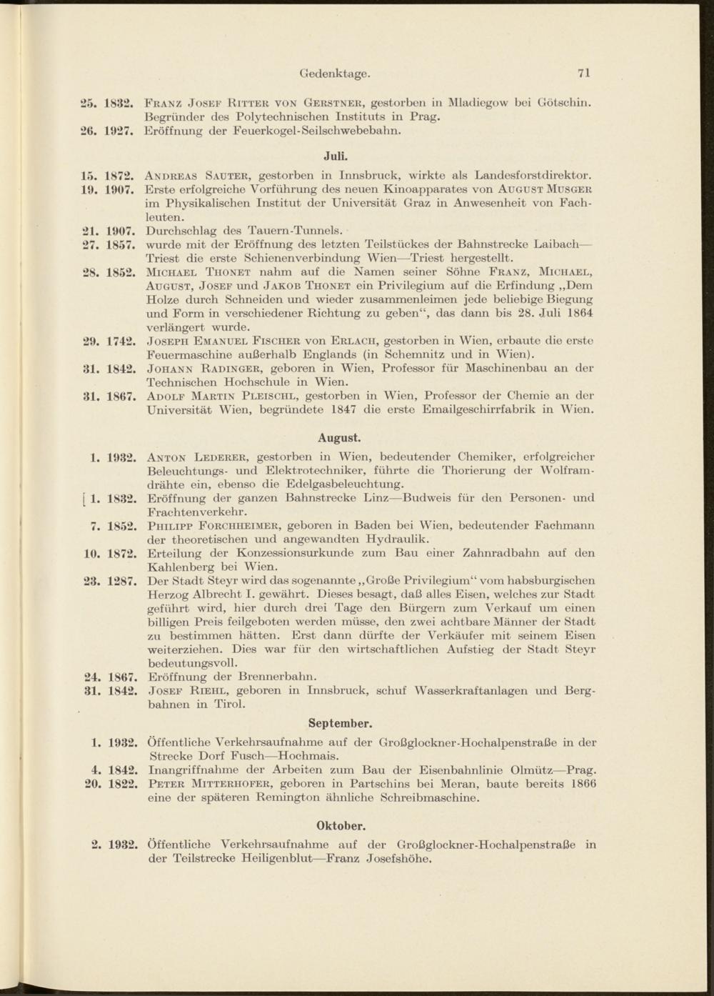 Gedenktage der österreichischen Technikgeschichte im Jahre 1952 von Therese Stampfl