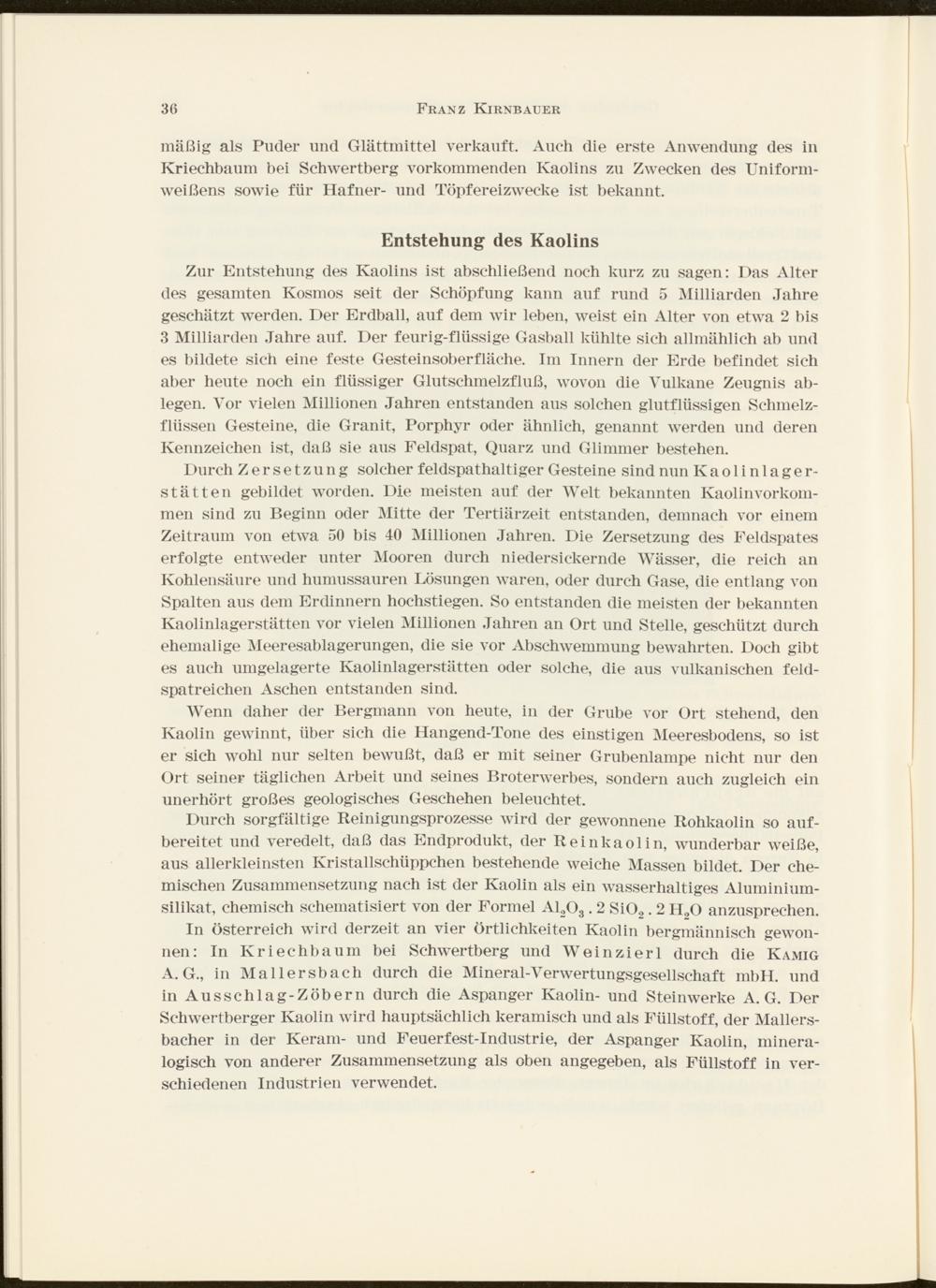 Geschichte der Wiener Porzellanmanufaktur und ihre Beziehung zur Entwicklung der technischen Verwendung des Kaolins / von Franz Kirnbauer