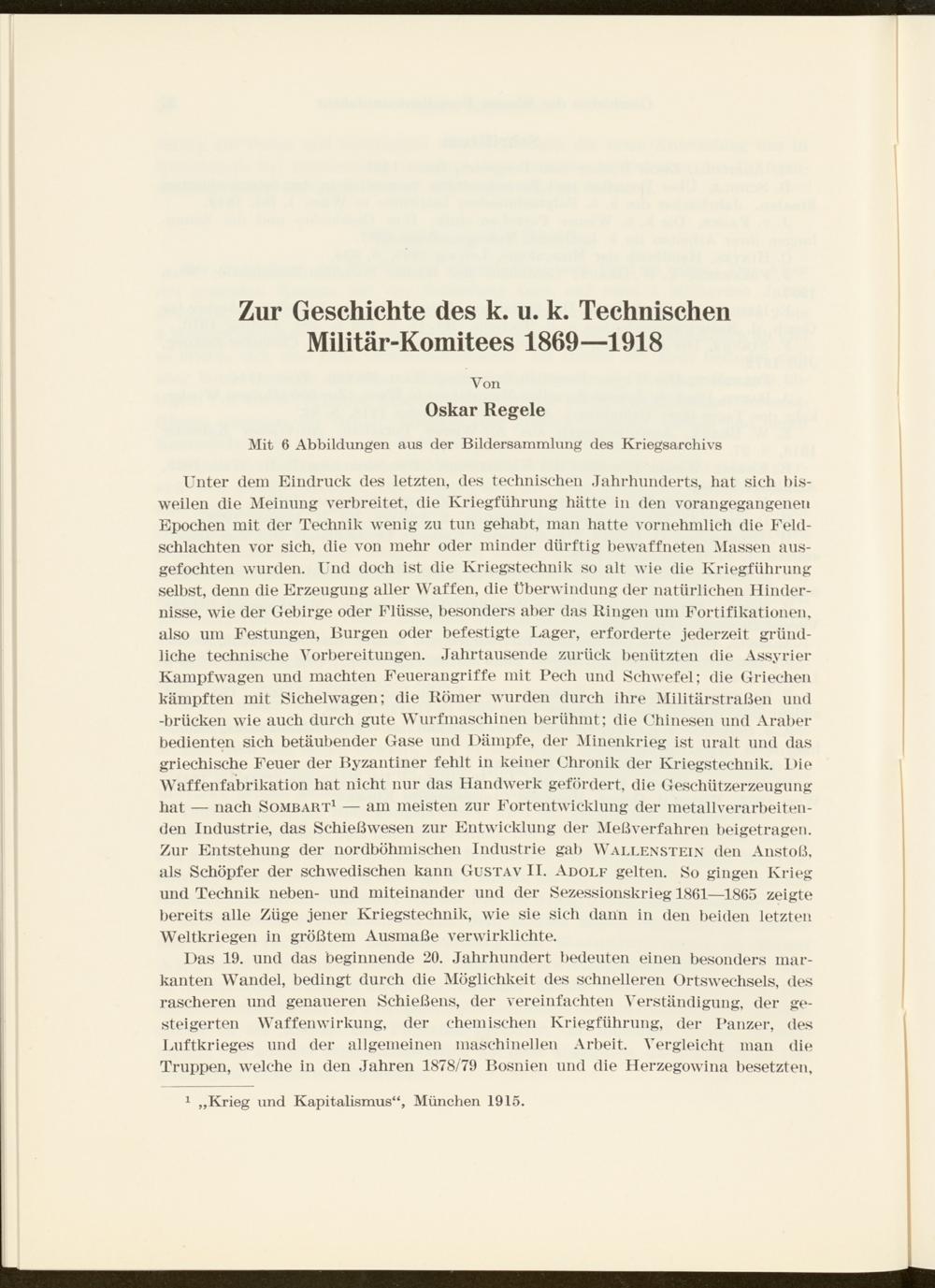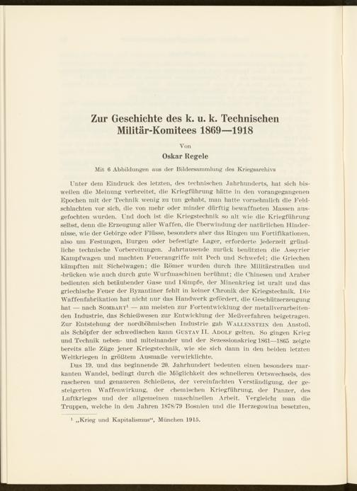 Zur Geschichte des k.u.k. Technischen Militär-Komitees 1869-1918 / von Oskar Regele