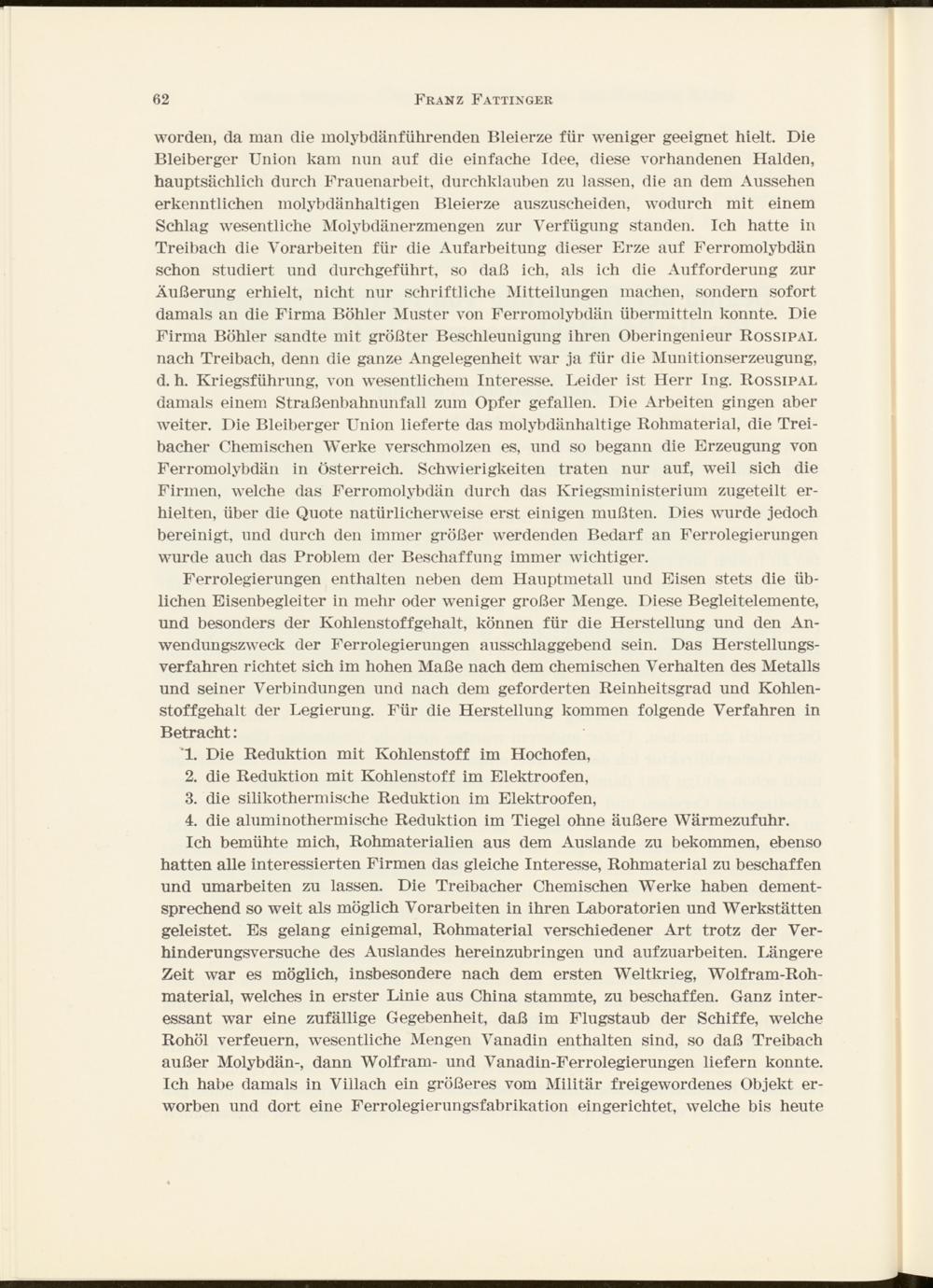 Beginn der Erzeugung von Ferrolegierungen für die Edelstahlerzeugung in Österreich / von Franz Fattinger