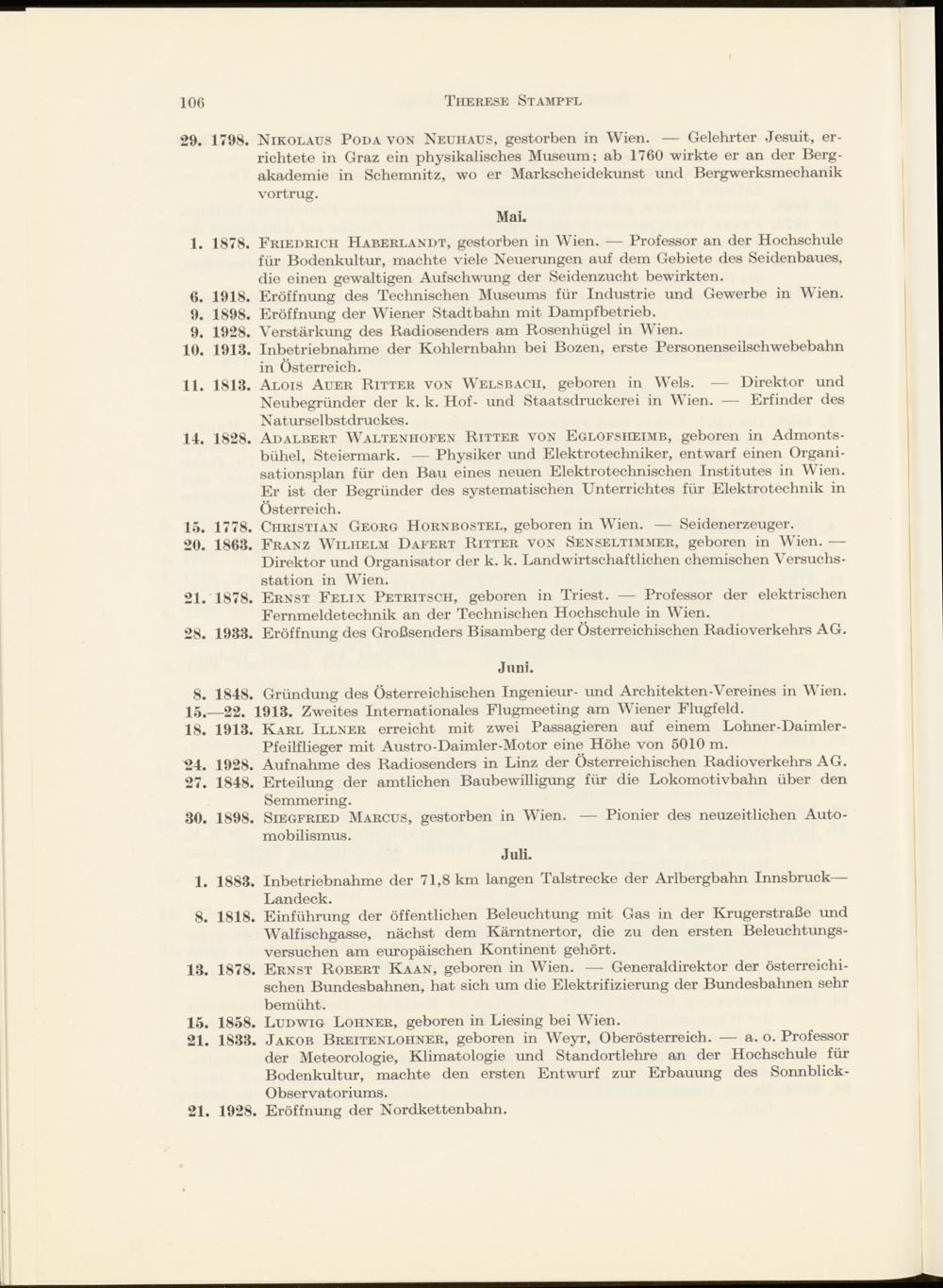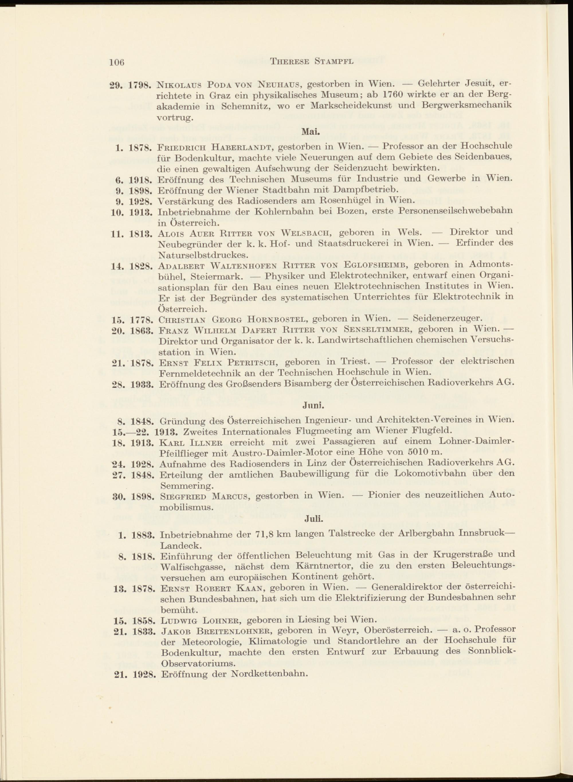 Gedenktage der österreichischen Technikgeschichte im Jahre 1953 von Therese Stampfl