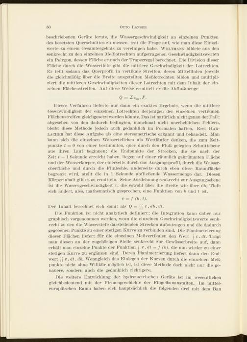 Zur Geschichte des hydrometrischen Meßwesens / von Otto Lanser
