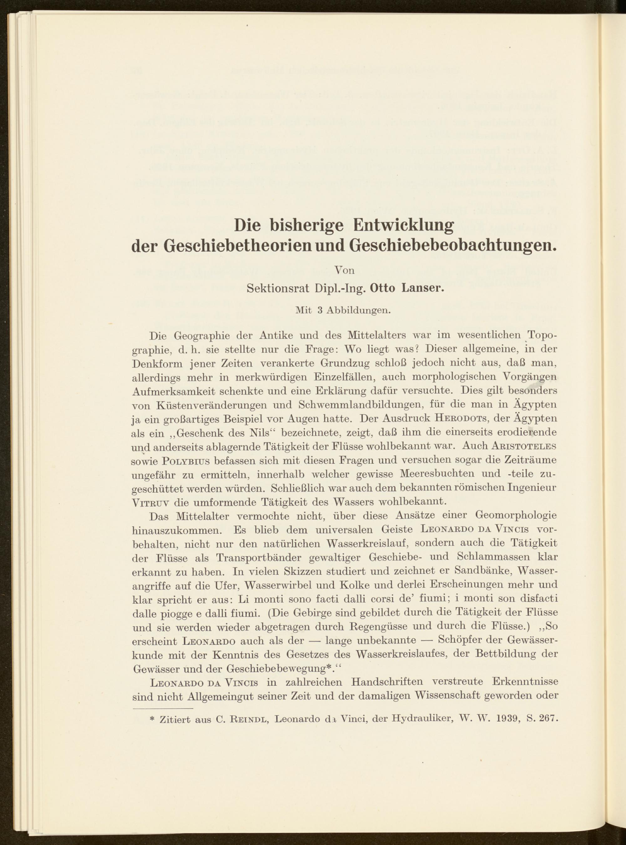 Die bisherige Entwicklung der Geschiebetheorien und Geschiebebeobachtungen / von Otto Lanser