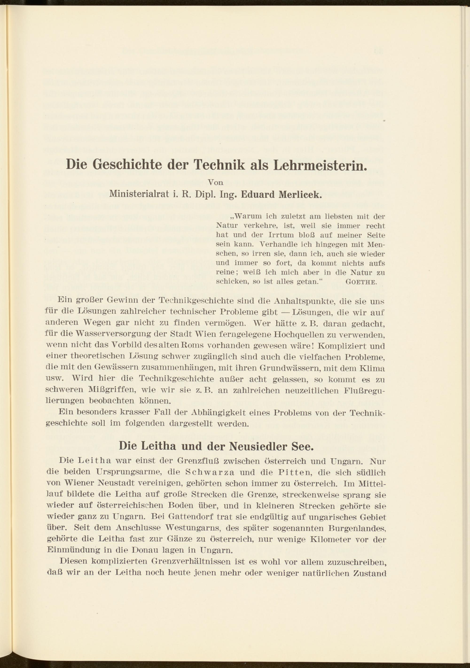 Die Geschichte der Technik als Lehrmeisterin / von Eduard Merlicek