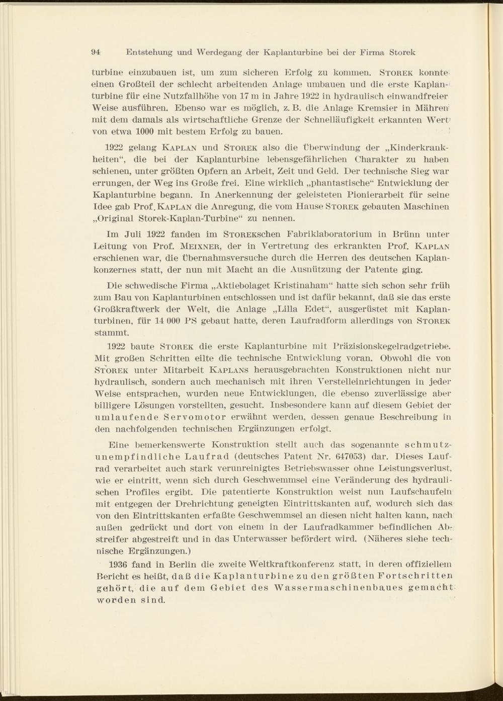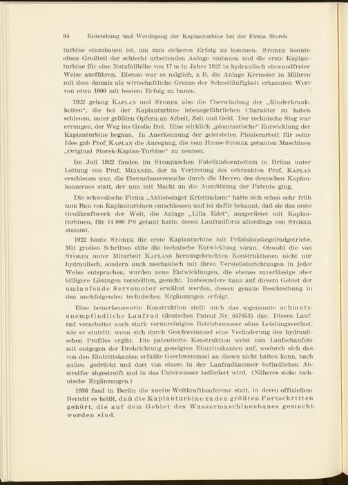Entstehung und Werdegang der Kaplanturbine bei der Firma Storek