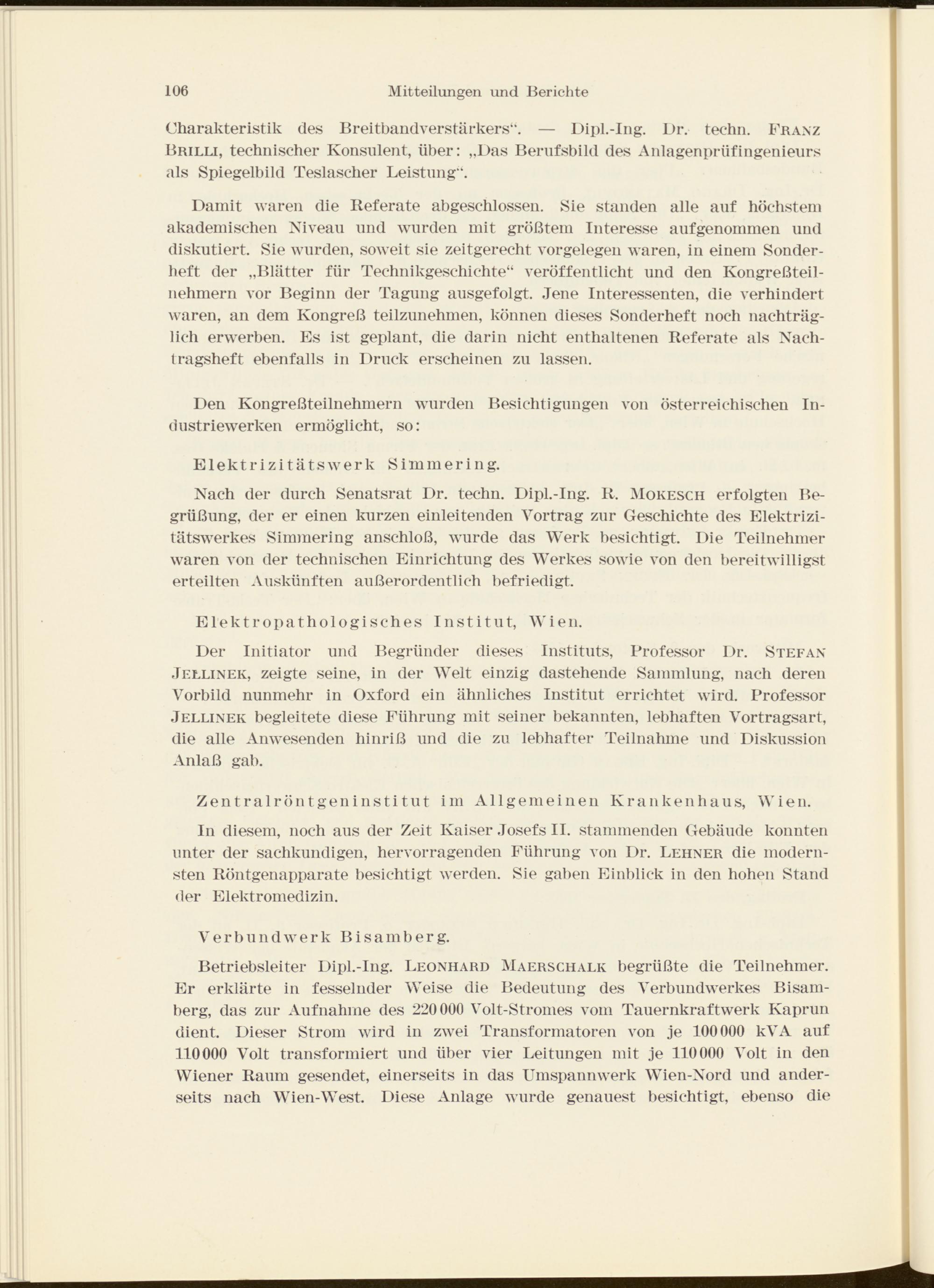 Gedenktage der österreichischen Technikgeschichte im Jahre 1954 von Therese Stampfl