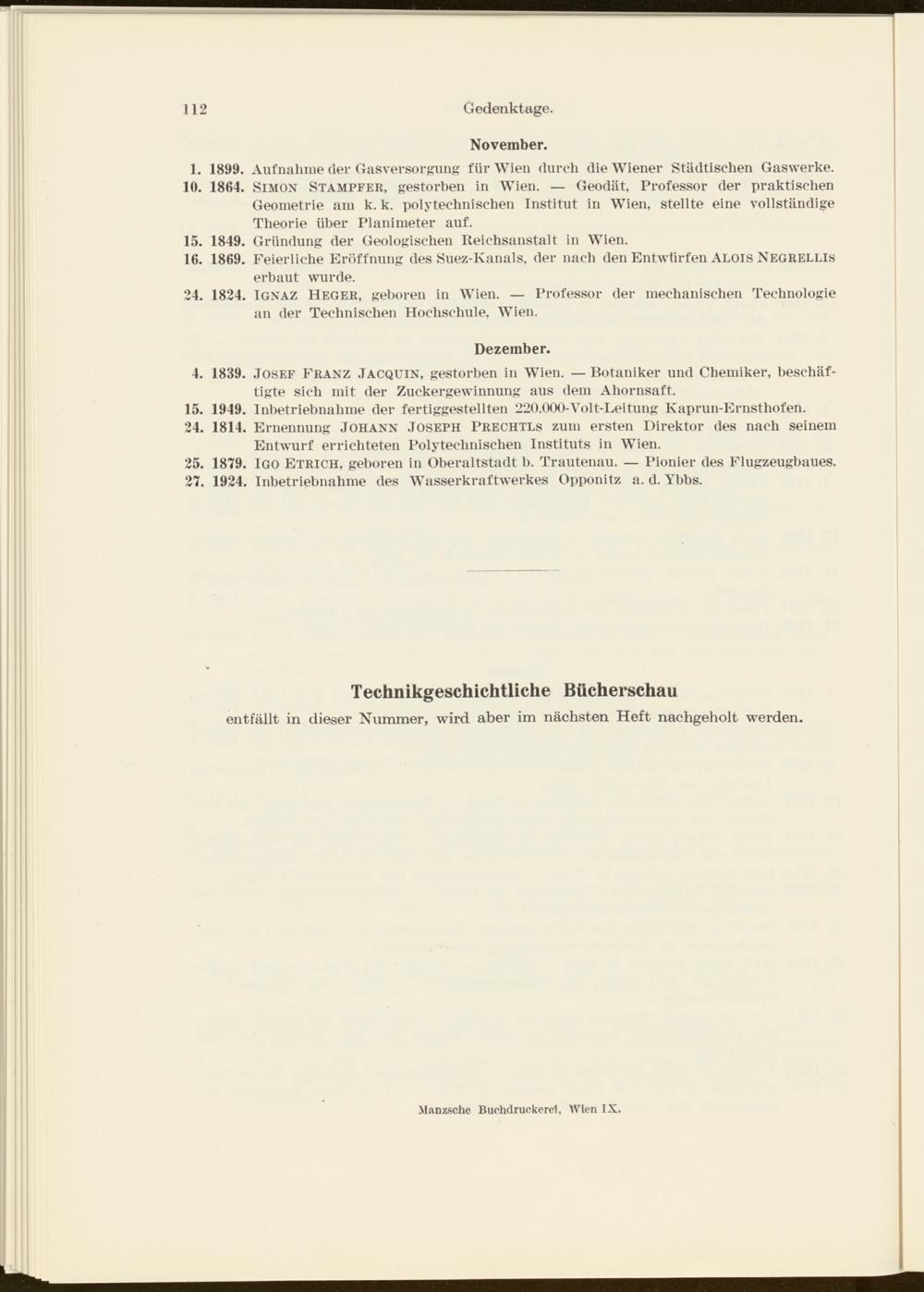 Gedenktage der österreichischen Technikgeschichte im Jahre 1954 von Therese Stampfl