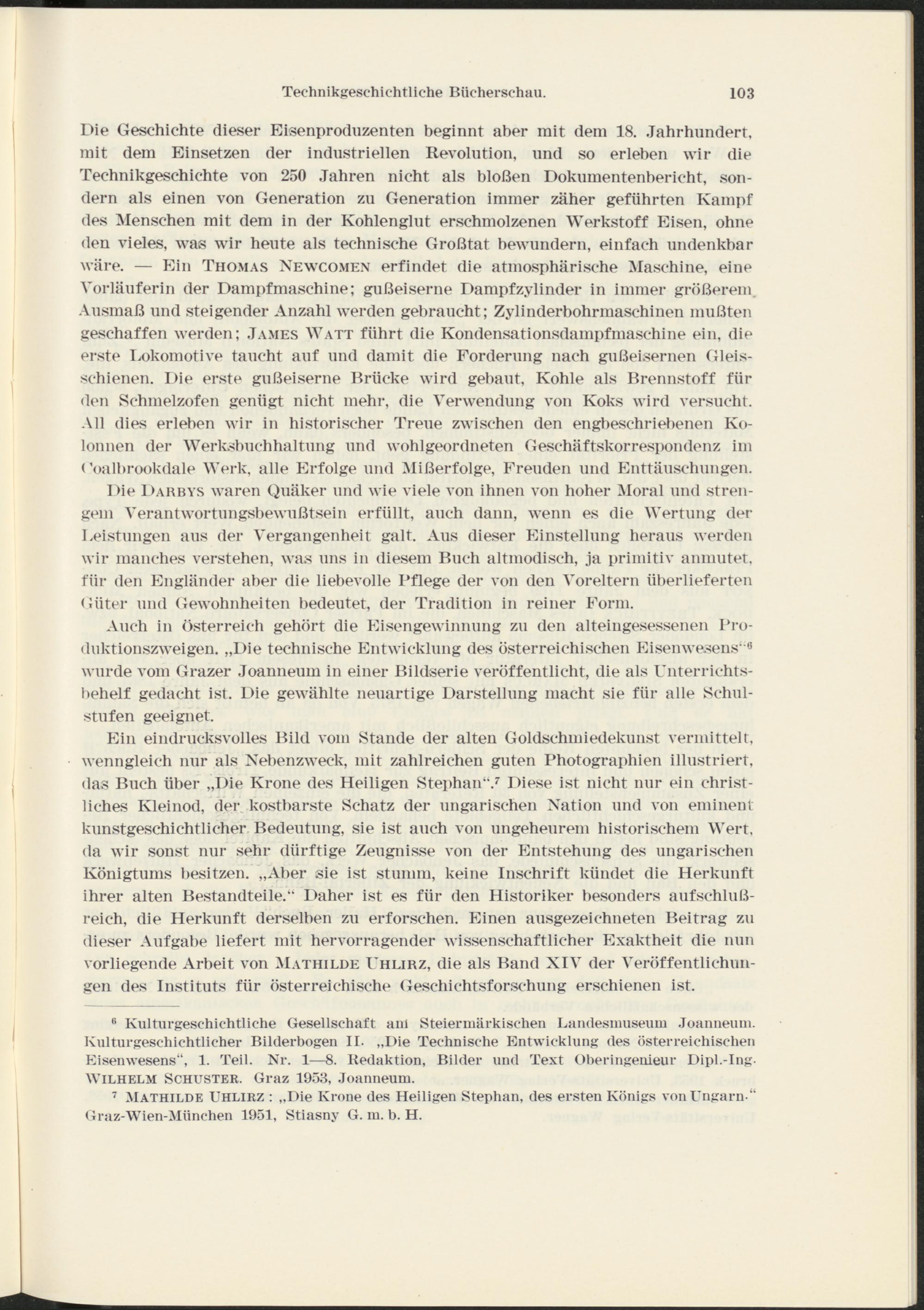 Technikgeschichtliche Bücherschau von Dipl.-Ing. Fritz Sykora unter Mitwirkung von Dr. Kurt Klaudy und Ing. Hans Kominek