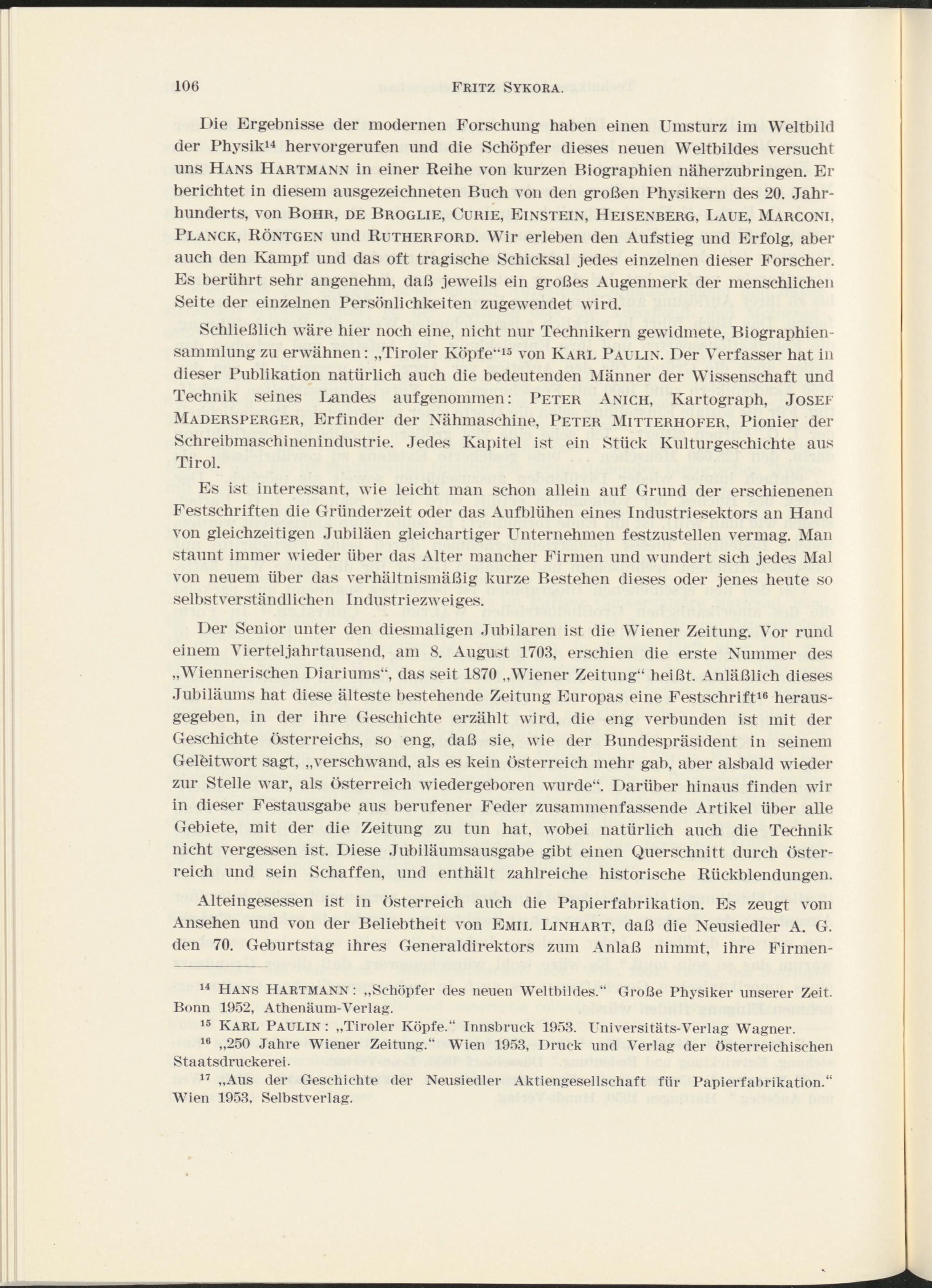 Technikgeschichtliche Bücherschau von Dipl.-Ing. Fritz Sykora unter Mitwirkung von Dr. Kurt Klaudy und Ing. Hans Kominek