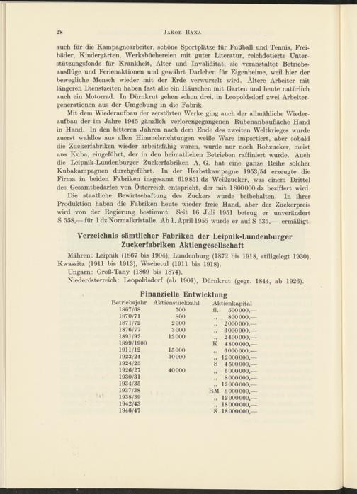 Die Leipnik-Lundenburger Zuckerfabriken-Actiengesellschaft / von Jakob Baxa
