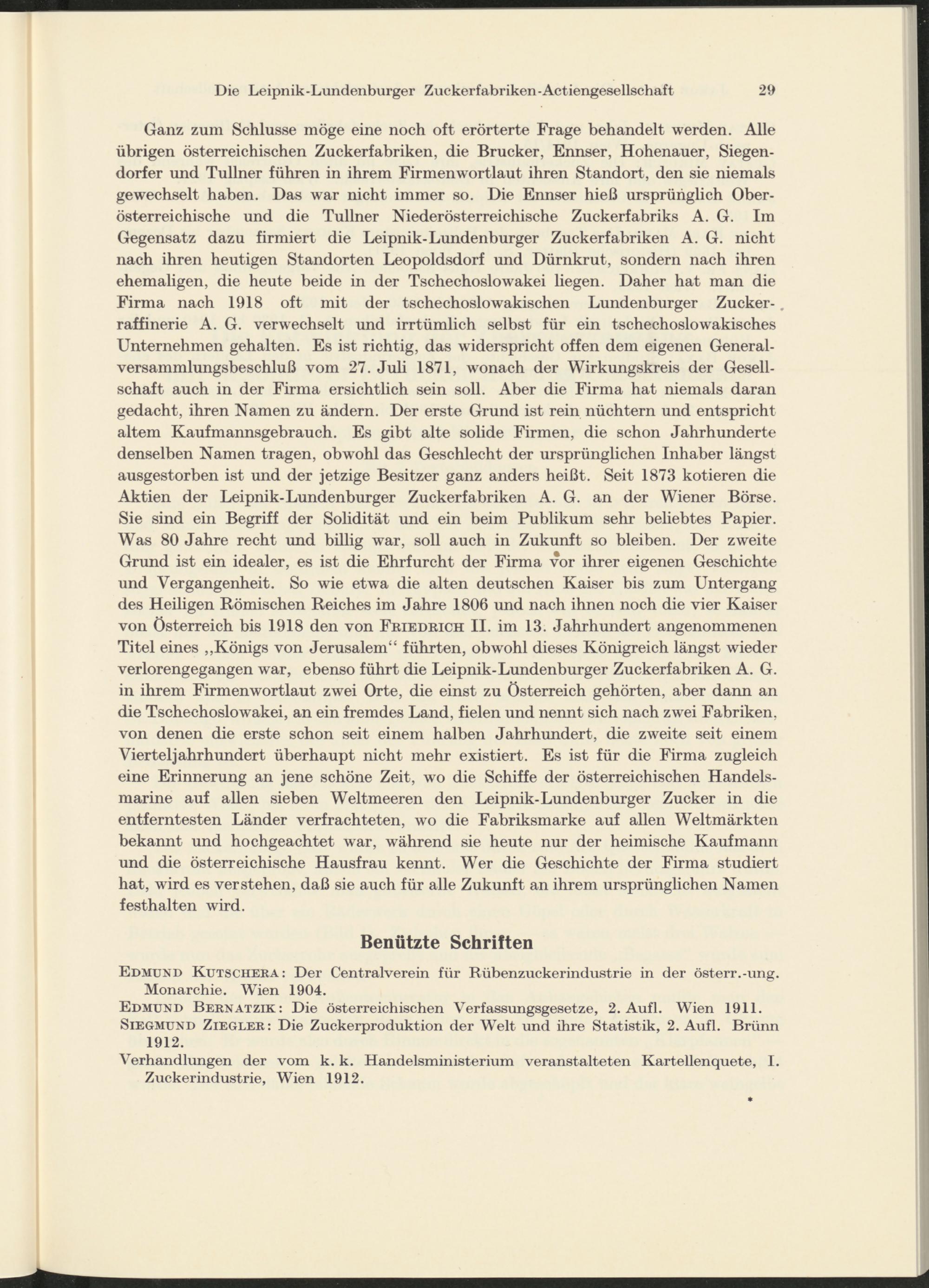 Die Leipnik-Lundenburger Zuckerfabriken-Actiengesellschaft / von Jakob Baxa