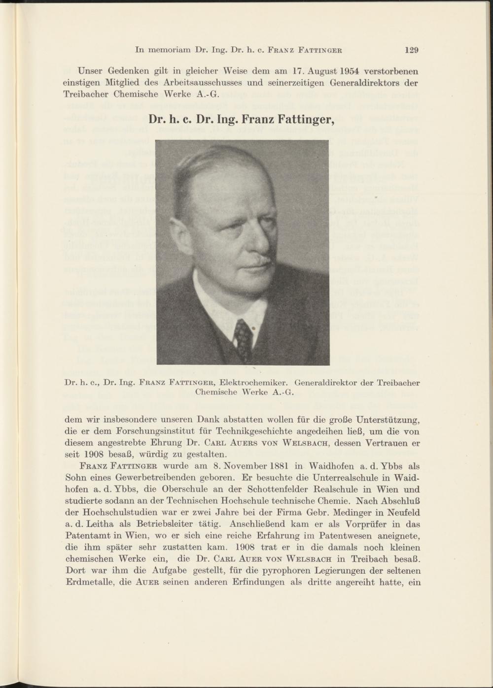 In memoriam Dr. h. c. Dr. Ing. Franz Fattinger