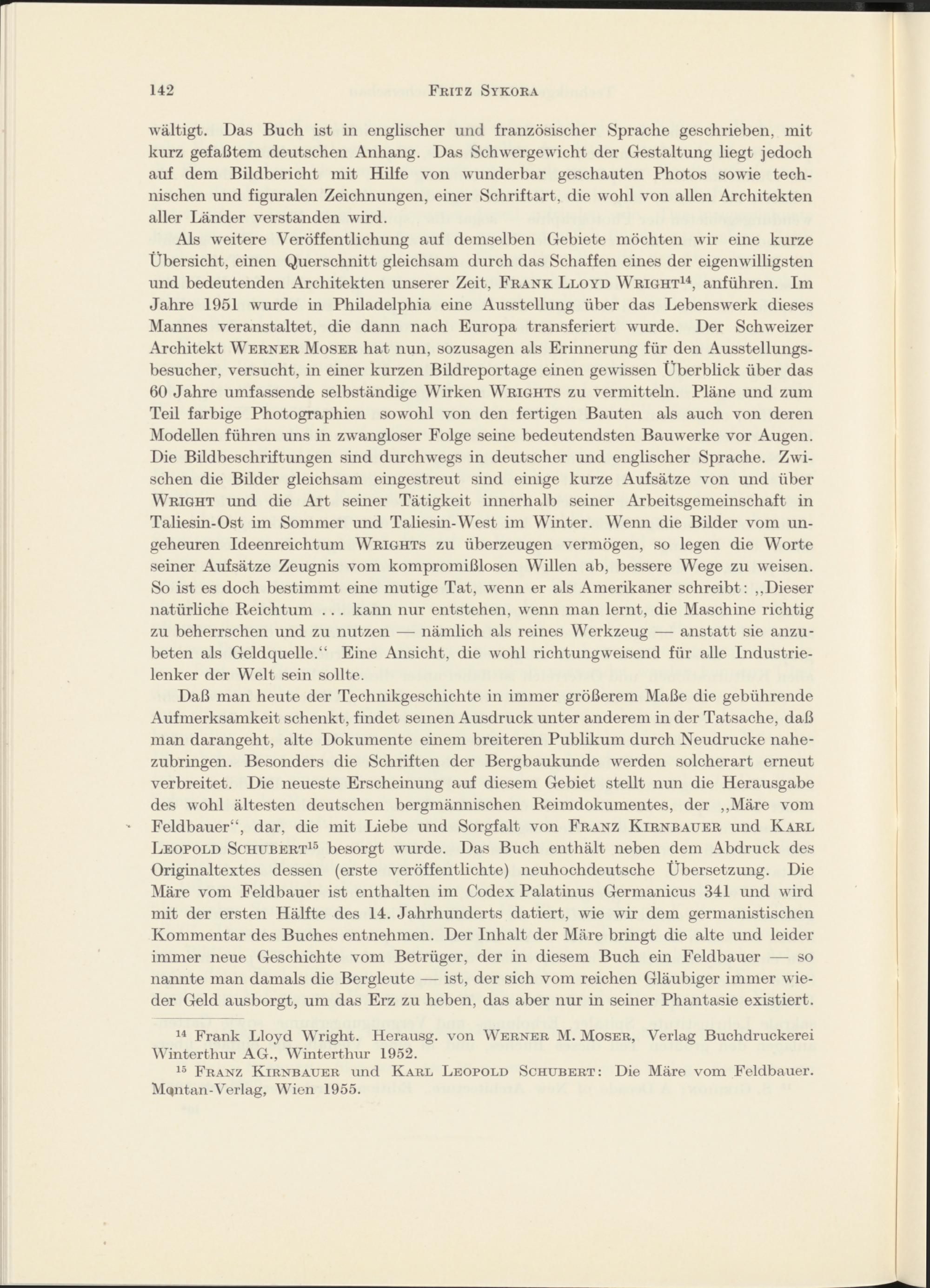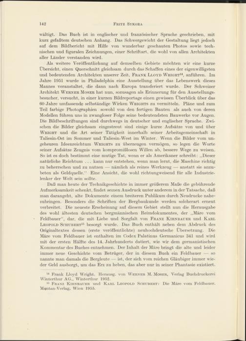 Technikgeschichtliche Bücherschau von Dipl.-Ing. Fritz Sykora unter Mitwirkung von Dipl.-Ing. August Weß und Ing. Hans Kominek