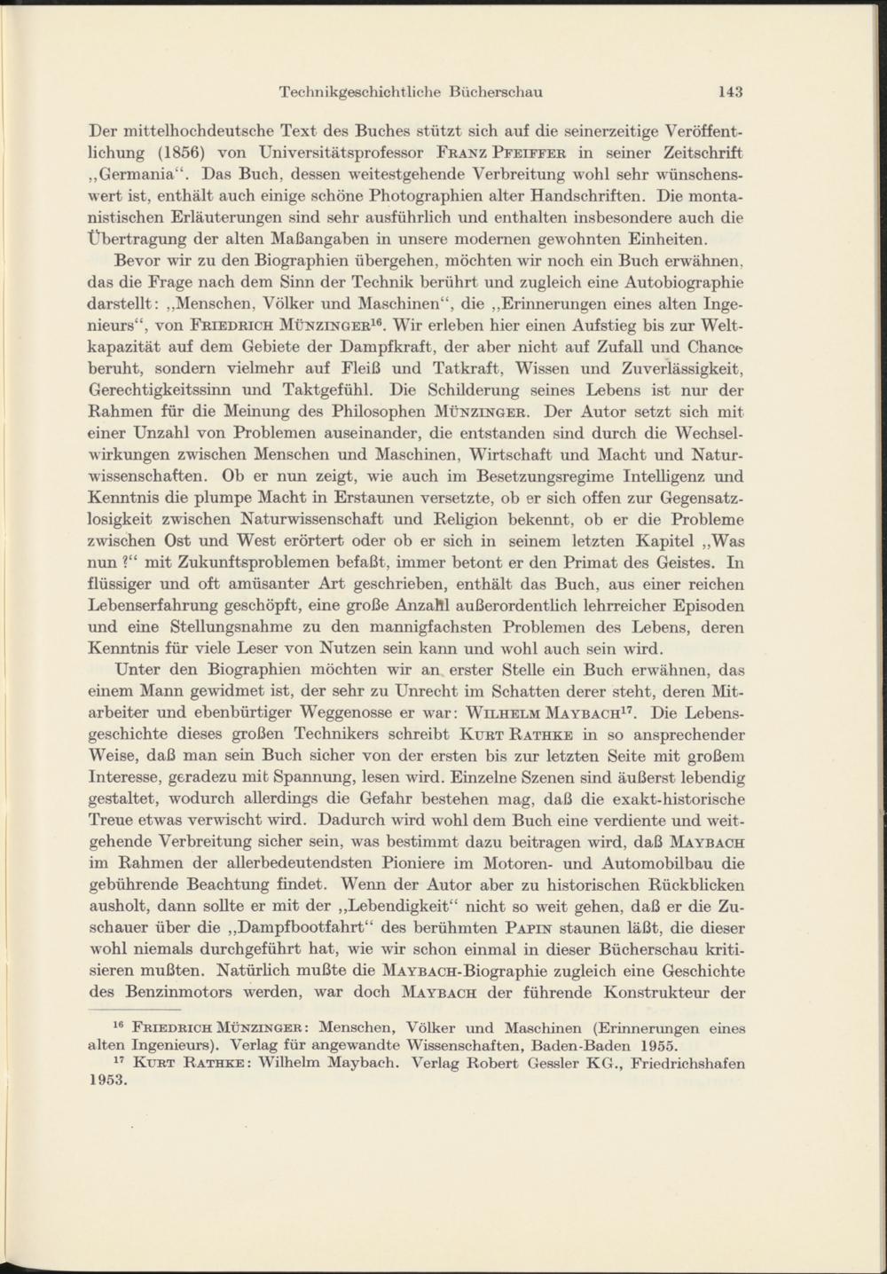 Technikgeschichtliche Bücherschau von Dipl.-Ing. Fritz Sykora unter Mitwirkung von Dipl.-Ing. August Weß und Ing. Hans Kominek