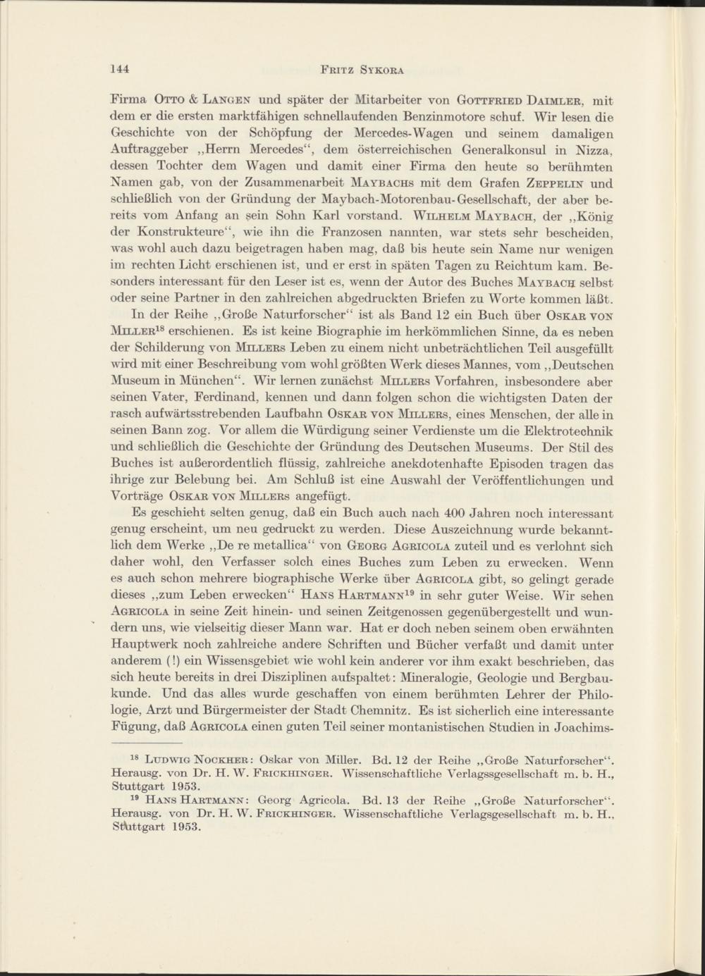 Technikgeschichtliche Bücherschau von Dipl.-Ing. Fritz Sykora unter Mitwirkung von Dipl.-Ing. August Weß und Ing. Hans Kominek