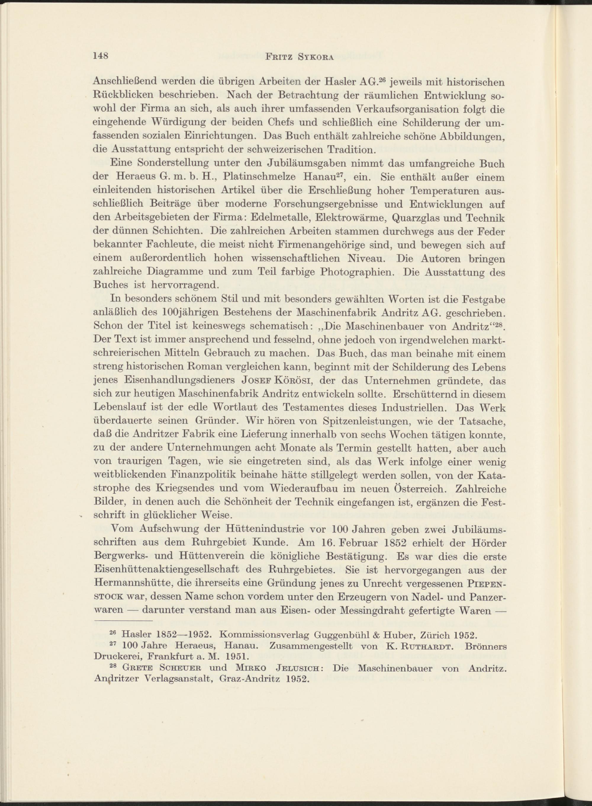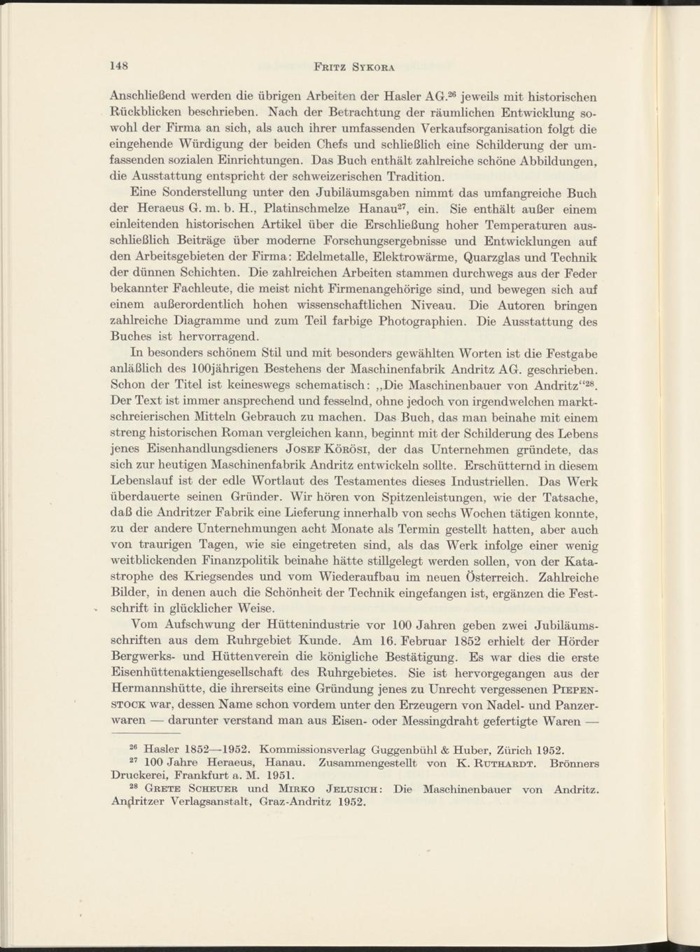 Technikgeschichtliche Bücherschau von Dipl.-Ing. Fritz Sykora unter Mitwirkung von Dipl.-Ing. August Weß und Ing. Hans Kominek