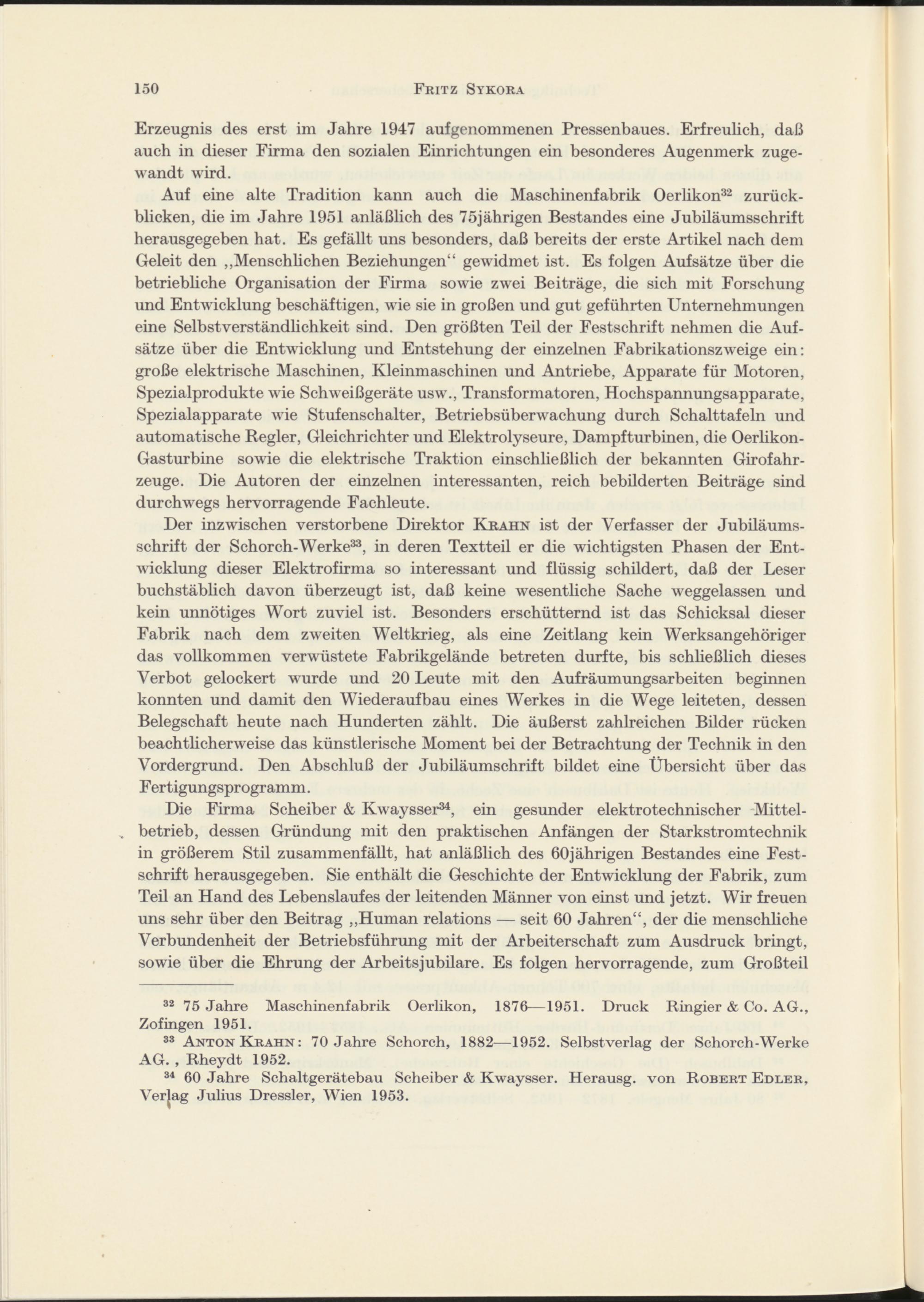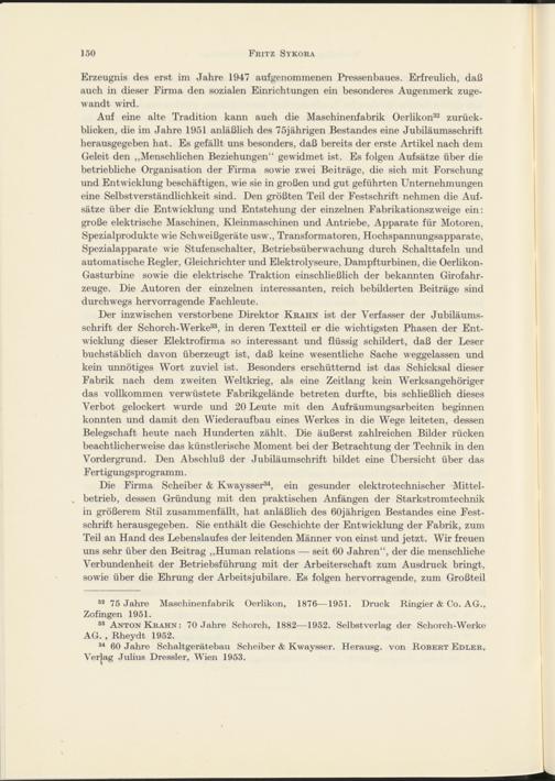 Technikgeschichtliche Bücherschau von Dipl.-Ing. Fritz Sykora unter Mitwirkung von Dipl.-Ing. August Weß und Ing. Hans Kominek