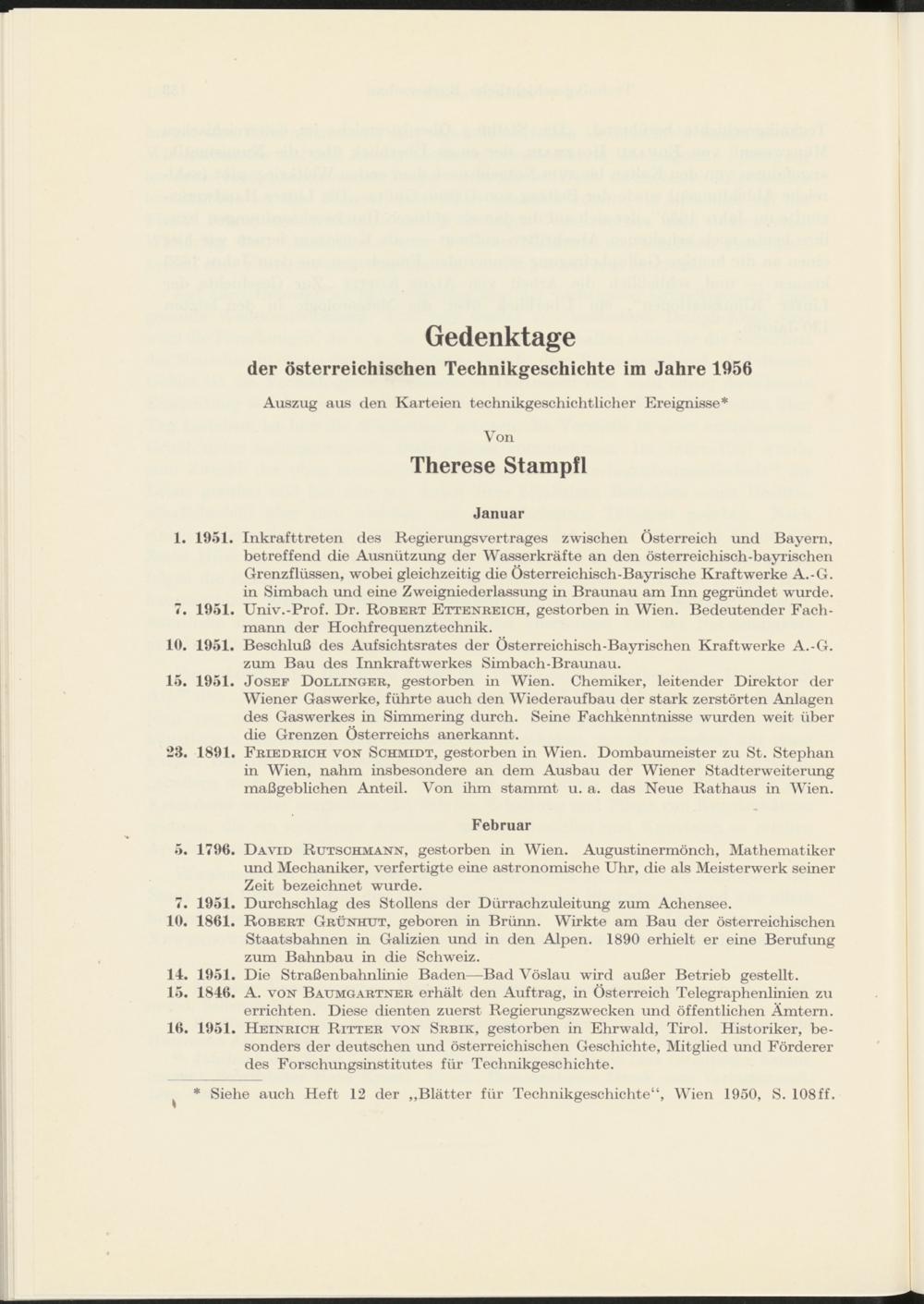 Gedenktage der österreichischen Technikgeschichte im Jahre 1956 von Therese Stampfl