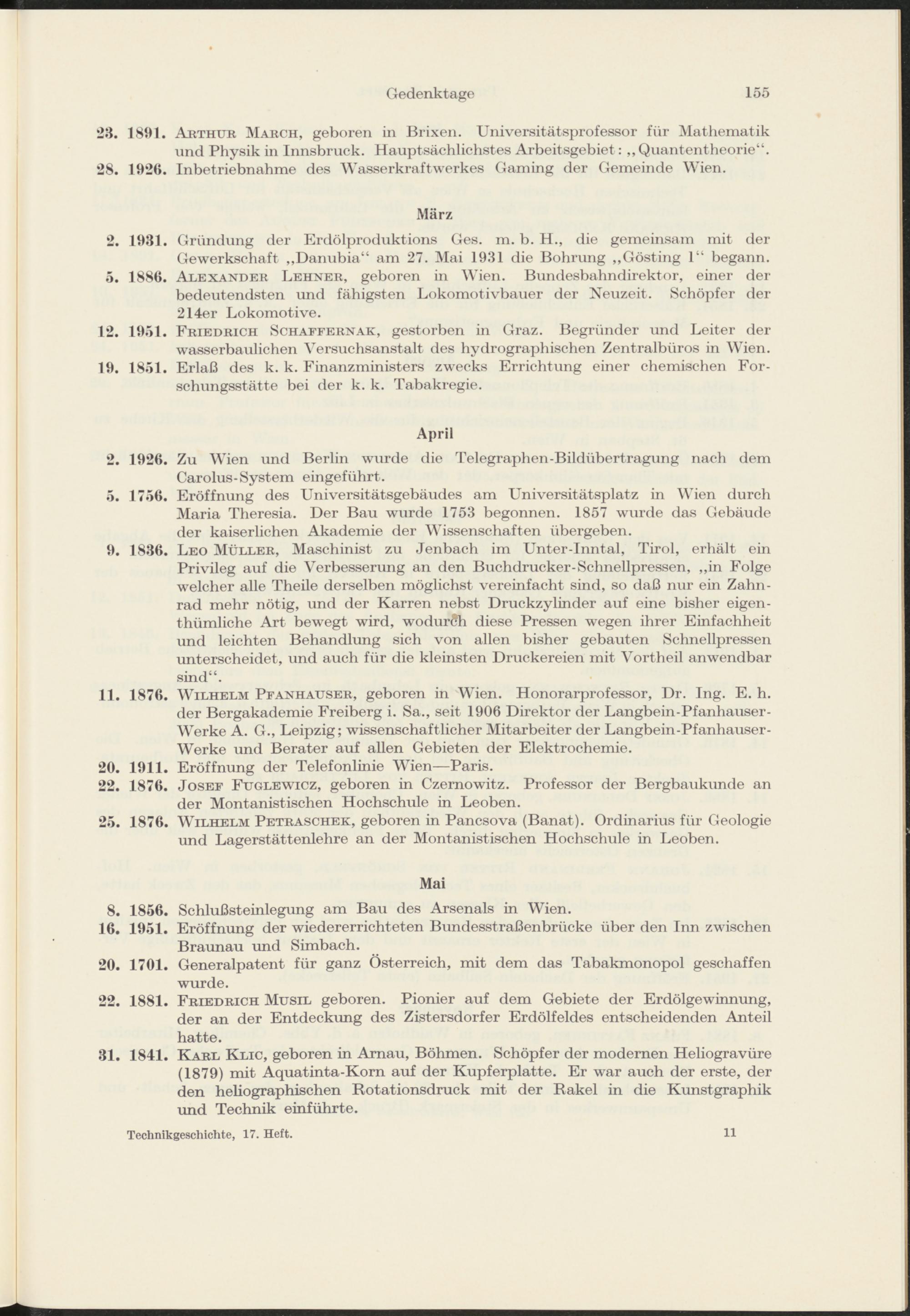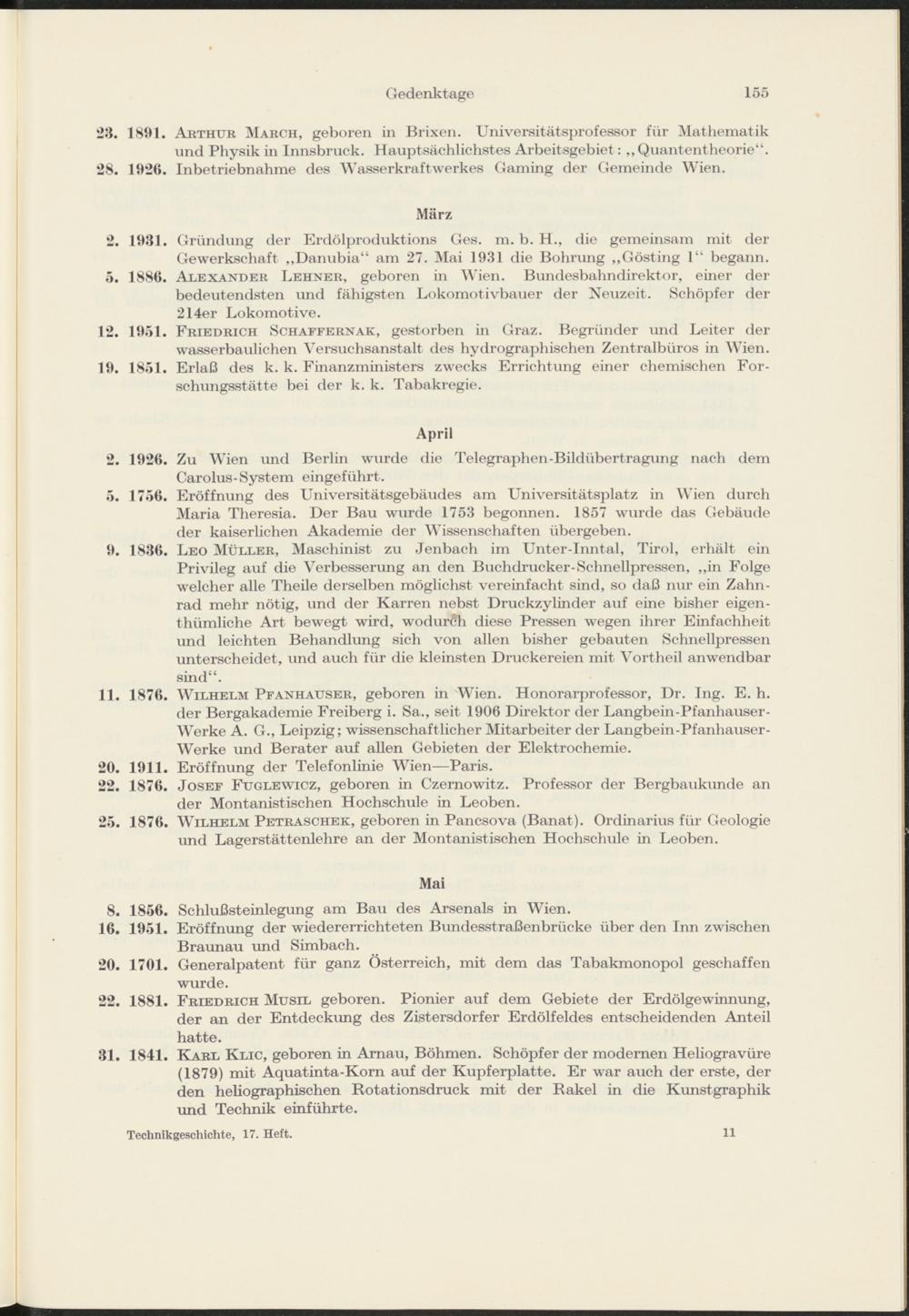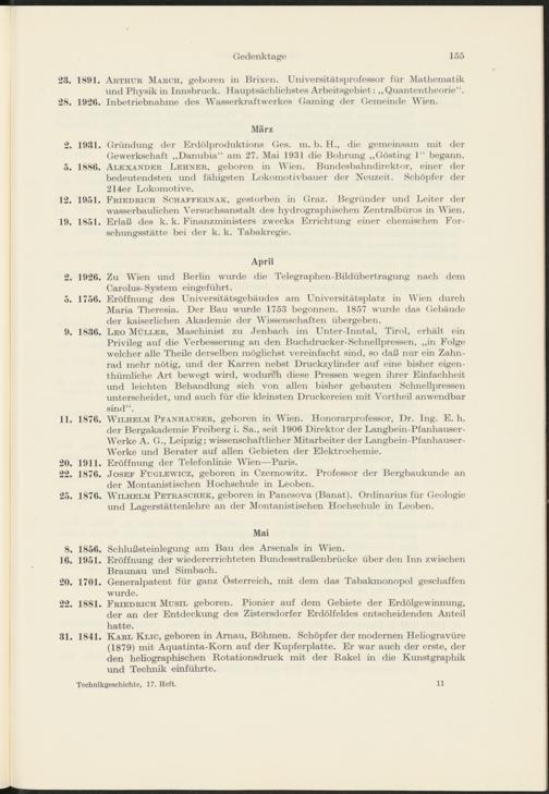 Gedenktage der österreichischen Technikgeschichte im Jahre 1956 von Therese Stampfl
