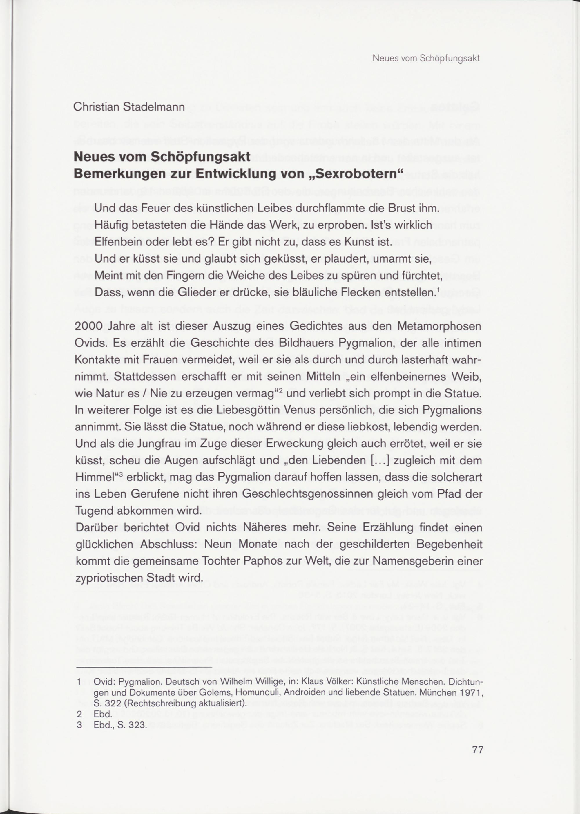 Neues vom Schöpfungsakt : Utopien und Dystopien hinsichtlich einer Sexualität von morgen / Christian Stadelmann