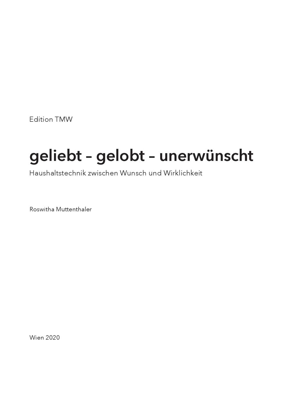 Edition TMW geliebt – gelobt – unerwünscht Haushaltstechnik zwischen Wunsch und Wirklichkeit Roswitha Muttenthaler Wien 2020