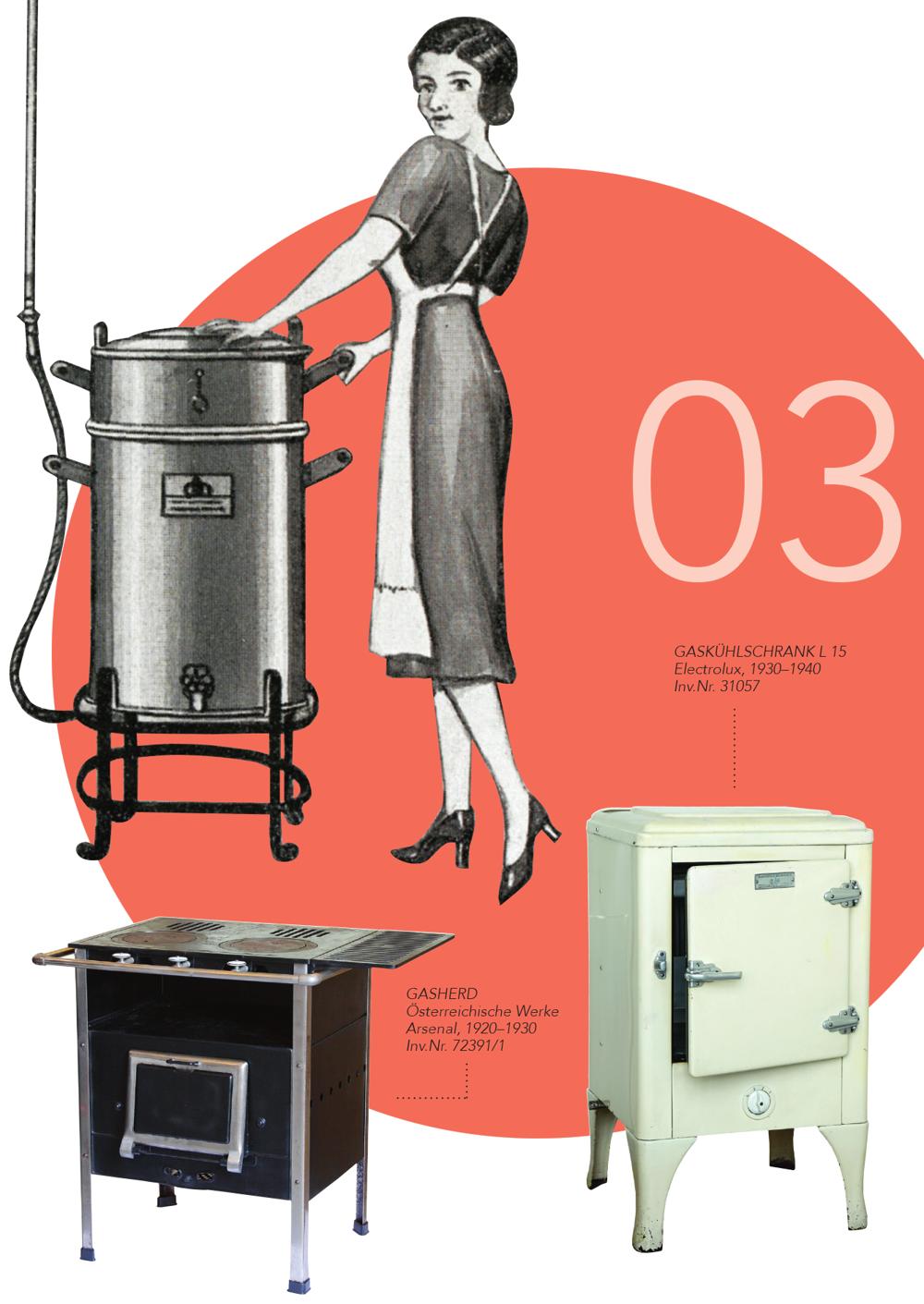 03 GASKÜHLSCHRANK L 15 Electrolux, 1930–1940 Inv.Nr. 31057 GASHERD Österreichische Werke Arsenal, 1920–1930 Inv.Nr. 72391/1