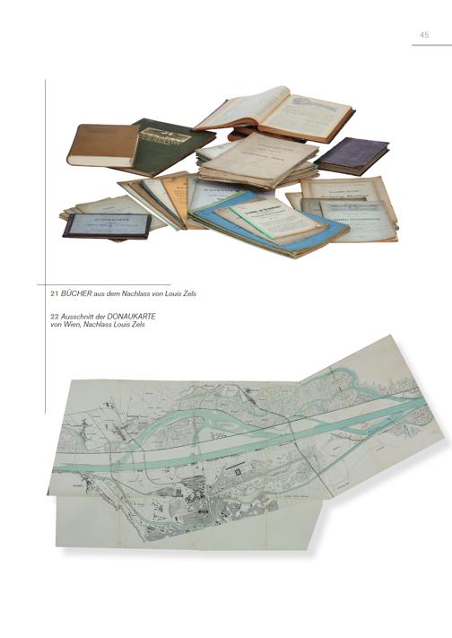 45 21 BÜCHER aus dem Nachlass von Louis Zels 22 Ausschnitt der DONAUKARTE von Wien, Nachlass Louis Zels