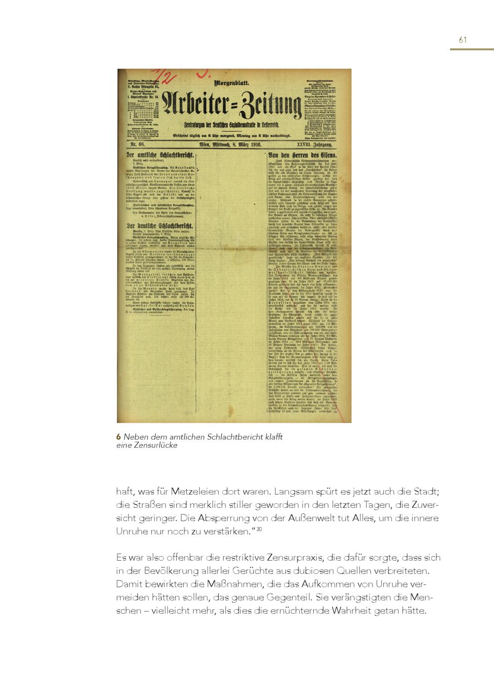 61 6 einNeeZbeennsduerlmückaemtlichen Schlachtbericht klafft haft, was für Metzeleien dort waren. Langsam spürt es jetzt auch die Stadt; die Straßen sind merklich stiller geworden in den letzten Tagen, die Zuversicht geringer. Die Absperrung von der Außenwelt tut Alles, um die innere Unruhe nur noch zu verstärken.” 30 Es war also offenbar die restriktive Zensurpraxis, die dafür sorgte, dass sich in der Bevölkerung allerlei Gerüchte aus dubiosen Quellen verbreiteten. Damit bewirkten die Maßnahmen, die das Aufkommen von Unruhe vermeiden hätten sollen, das genaue Gegenteil. Sie verängstigten die Menschen – vielleicht mehr, als dies die ernüchternde Wahrheit getan hätte.