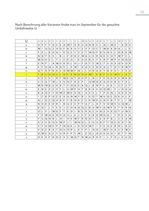 159 Nach Berechnung aller Varianten findet man im September für die gesuchte NUmackhehBrewreaclzhenUun: g aller Varianten findet man im September für die gesuchte Umkehr U walze U: A B C D E F G H I J K L M N O P Q R S T U V W X Y Z U ba H P F Y G C E A WT X R U O N B S L Q J MZ I K D V A B C D E F G H I J K L MN O P Q R S T U V WX Y Z WI QG Z H D F B X U Y S V P OC T MR K N A J L E a H P F Y G C E A WT X R U O N B S L Q J MZ I K D V c F X J R H A I E G C Y V Z T WQ P D U N S L O B K M bd WN GI QY GK ZS HI DB FJ BF XH UD YZ SW VA PU OX CR TQ ME RV KO NT AM PJ CL EL ec FM XO HJ RZ HL AT JI EC GK CG YI VE ZA TX WB QV PY DS UR NF SW PL OU BN KQ MD df NE GN YP KI SA MI BU KJ FD HL DH ZJ WF AB UY XC RW QZ ET VS OG TX MQ PV CO RL e MO H Z L T J C K G I E A X B V Y S R F WP U N Q D g S F O Q J B N V L E M I K G C Z D X A U T H Y R WP f E N P I A MU K D L H J F B Y C WZ T S G X Q V O R h Q T G P R K C O WMF N J L H D A E Y B V U I Z S X gi SY FR OU QH QJ BS NL VD PL EX MN GI KO GK CM ZI DE XB AF UZ TC HW YV RJ WA PT hj QU TZ GS PV RI KR CT OM WE MQ FY NO HJ PL HL DN AJ EF YC BG VA UD XI ZW SK XB ki YC RV UA HT QW SJ SL DU PN XF NR GZ OP KI MQ MI EO BK FG ZD CH WB VE YJ AX TL jl UM ZD SW VB UI RX TK MT EV QO YG OS HA PQ LJ NR NJ FP CL GH AE DI XC WF KZ BY k C V A T WJ S U N F R Z P I QMOK G D H B E Y X L m Z N E X C V Y L U WP H T B R K S O Q M I F J D G A l MD WB U X K T V O G S A Q J R N P L H E I C F Z Y n B A O F Y D WZ MV X Q I U C S L T P R N J G K E H mo ZI NC EB XP CG VZ YE XL UA WN PW HY TR BJ RV KD ST OM QU MQ SI FO KJ DH GL AF pn BG AJ OD FC YQ DH WA ZF MY VB XO QX ZI US CK SW EL TU PN RV NR TJ GP KL EI HM qo NI CH BK PE GD ZR EI XB AG NZ WC YP RY AJ VT DL TX MF UV QO SW OS KU HQ ML FJ pr GK OJ DI CL QF HE AS FJ YC BH OA XD ZQ SZ KB WU EM UY NG VW RP TX PT VL RI MN q N H K E D R I B G Z C P Y A T L X F V O WS U Q M J s O L P J MG F T K D I B E R A C V N Z H X Q Y U WS r K O I L F E S J C H A D Q Z B U MY G WP X T V R N t T P MQ K N H G U L E J C F S B D WO A I Y R Z V X us OY UL PQ NJ MR GL FO TI KH DV MI BF EK RD AG CT VC NE ZX HP XB QJ YZ US WA SW vt TX PZ MV QR KO NS HM GP UJ LI EW NJ CG FL SE BH DU WD OF AY QI YC RK ZA VT XB wu YC UY QA NW RS PL OT NI HQ VK MJ FX KO DH GM TF CI EV XE PG BZ RJ ZD SL AB WU v X Z V R O S MP J I WN G L E H U D F Y Q C K A T B x V D Z B X T Q U O R L K Y P I N G J WF H A S E MC w C Y A WS P T N Q K J X O H MF I V E G Z R D L B U y D WE A C Y U R V P S ML Z Q J O H K X G I B T F N xz VO DE ZX BF XB TD QZ UV OS RW QL KT YN PM AI NR GK PJ WI FL HY AH SJ EC MU CG y D WE A C Y U R V P S ML Z Q J O H K X G I B T F N z O E X F B D Z V S WQ T N MA R K P I L Y H J C U G