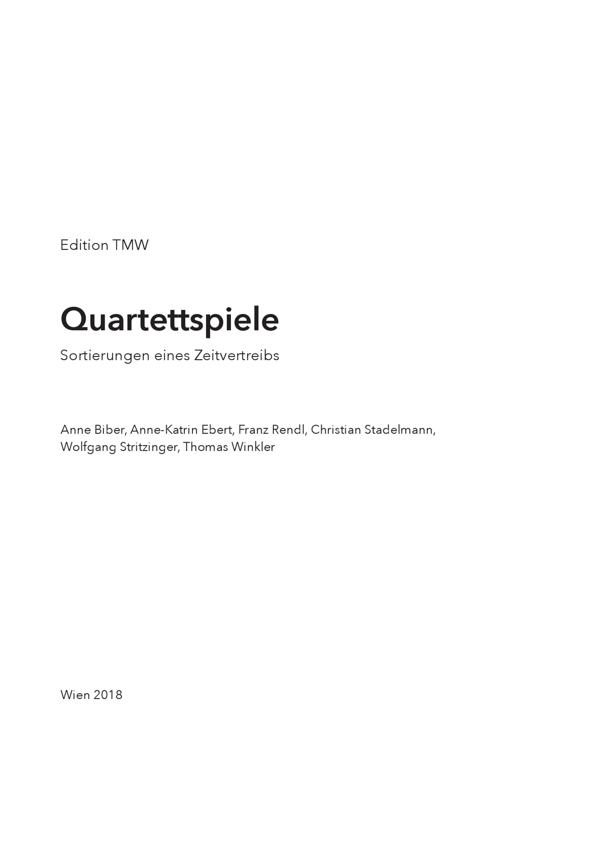 Quartettspiele : Sortierungen eines Zeitvertreibs ; [Sammelband] / Anne Biber, Anne-Katrin Ebert, Franz Rendl, Christian Stadelmann, Wolfgang Stritzinger, Thomas Winkler