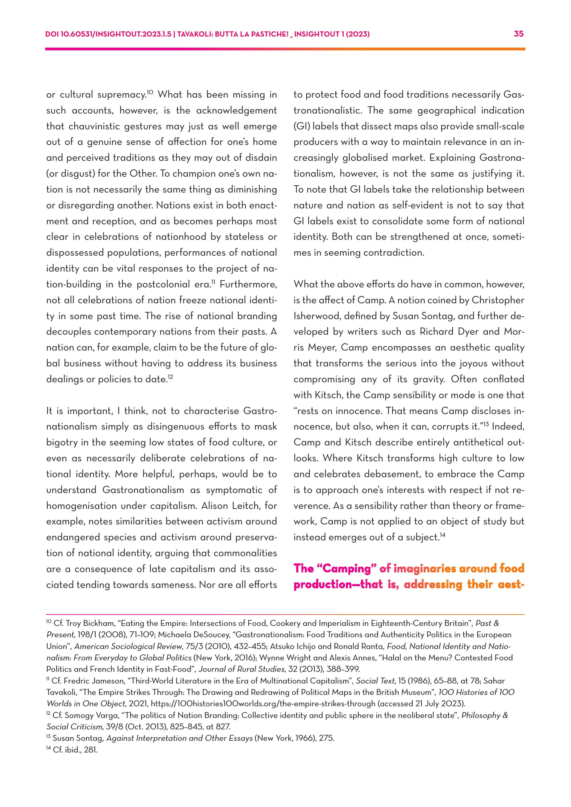 Tavakoli, Sahar: Butta la Pastiche! Camp Visions and National Palates
