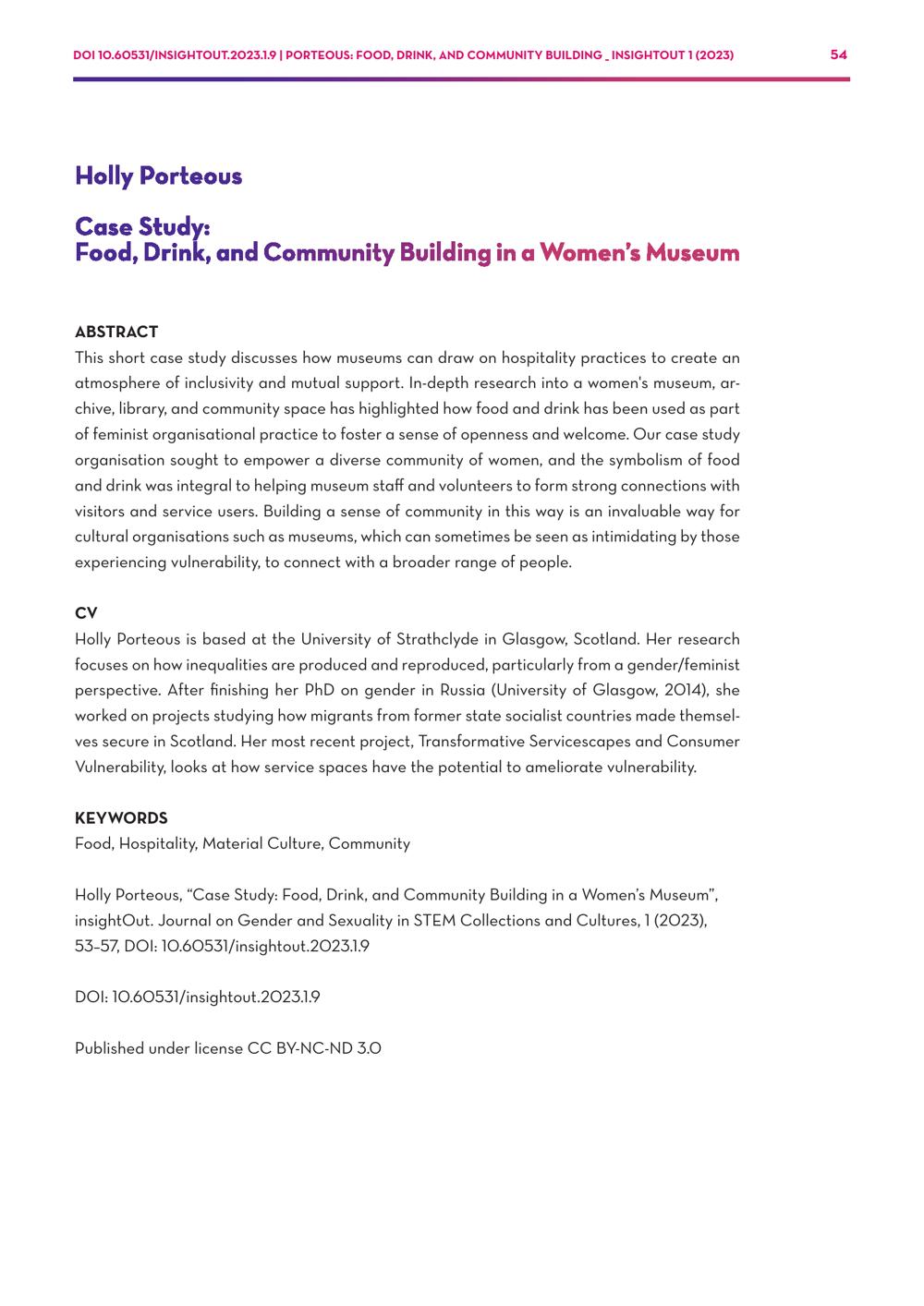 Porteous, Holly: Case Study: Food, Drink, and Community Building in a Women’s Museum