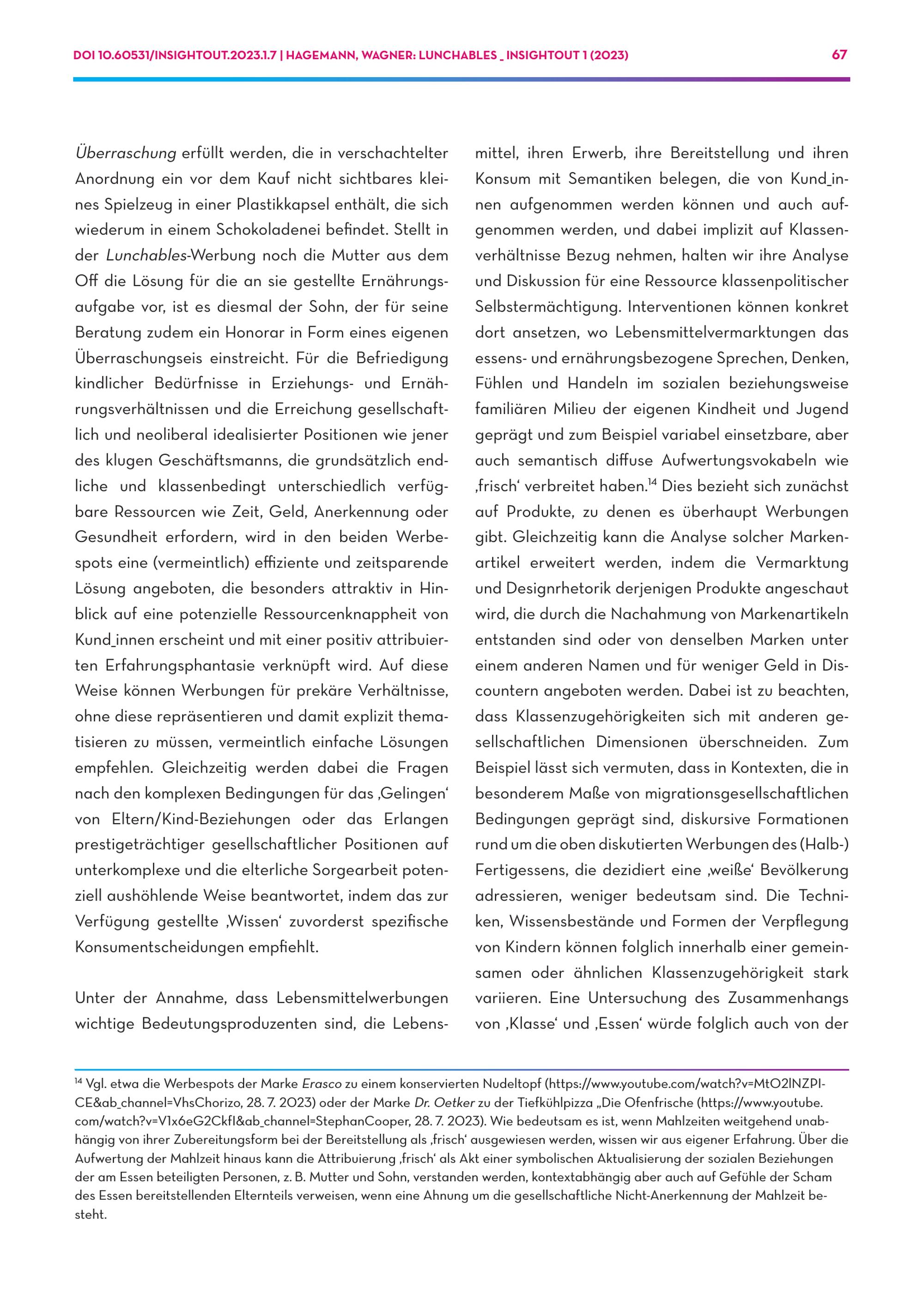 Hagemann, Philipp; Wagner, Alexander: Lunchables. Über den Zusammenhang von Essen und Klasse