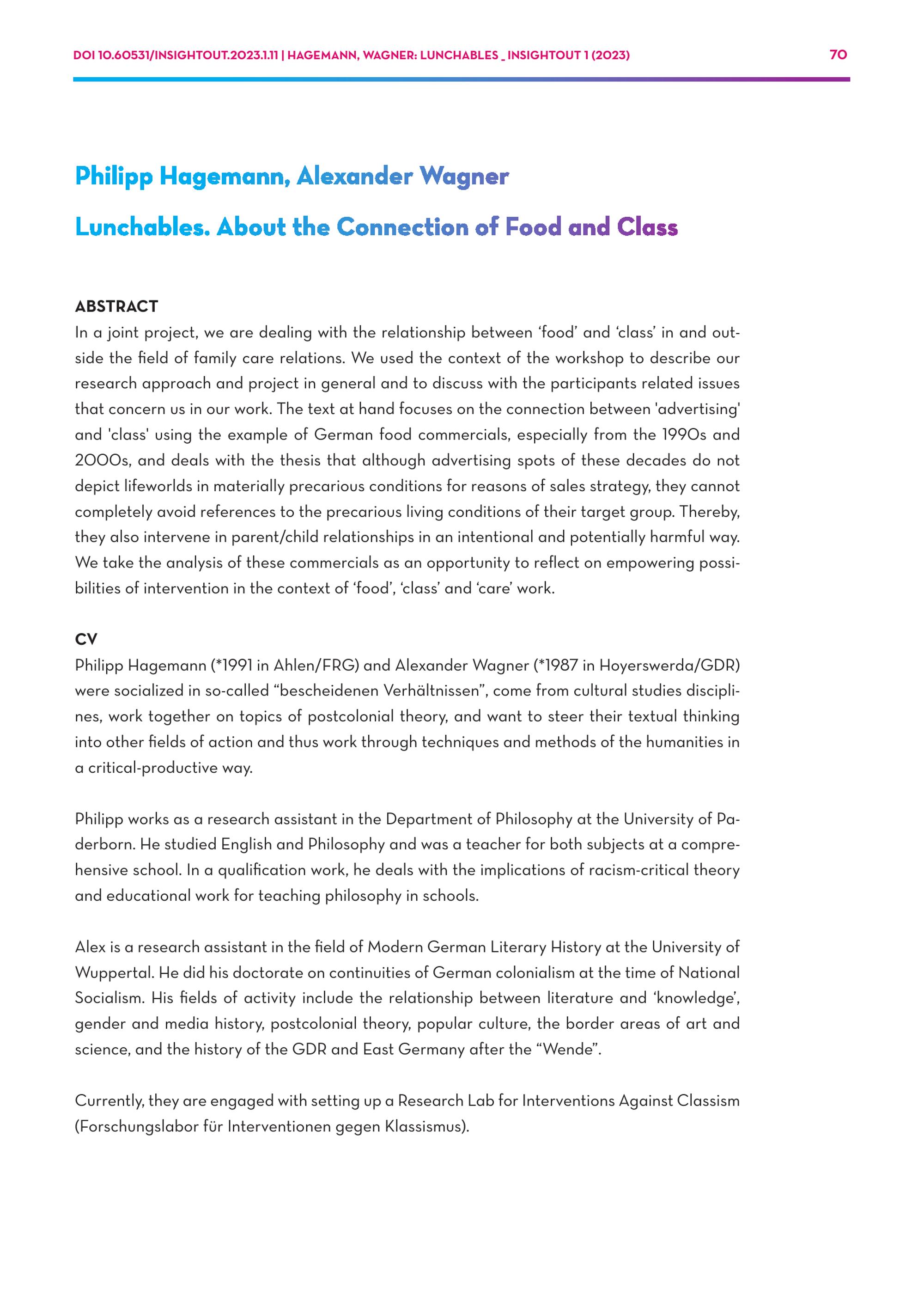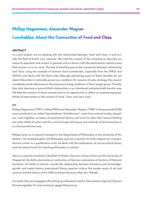 Hagemann, Philipp; Wagner, Alexander: Lunchables. About the Connection of Food and Class